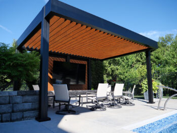 These homeowners can now relax poolside in the sun or the shade thanks to our freshly installed Azenco Outdoor R-Blade Louvered Pergola. The louvered top can open and close according to personal preference or the weather, creating a truly functional outdoor room.