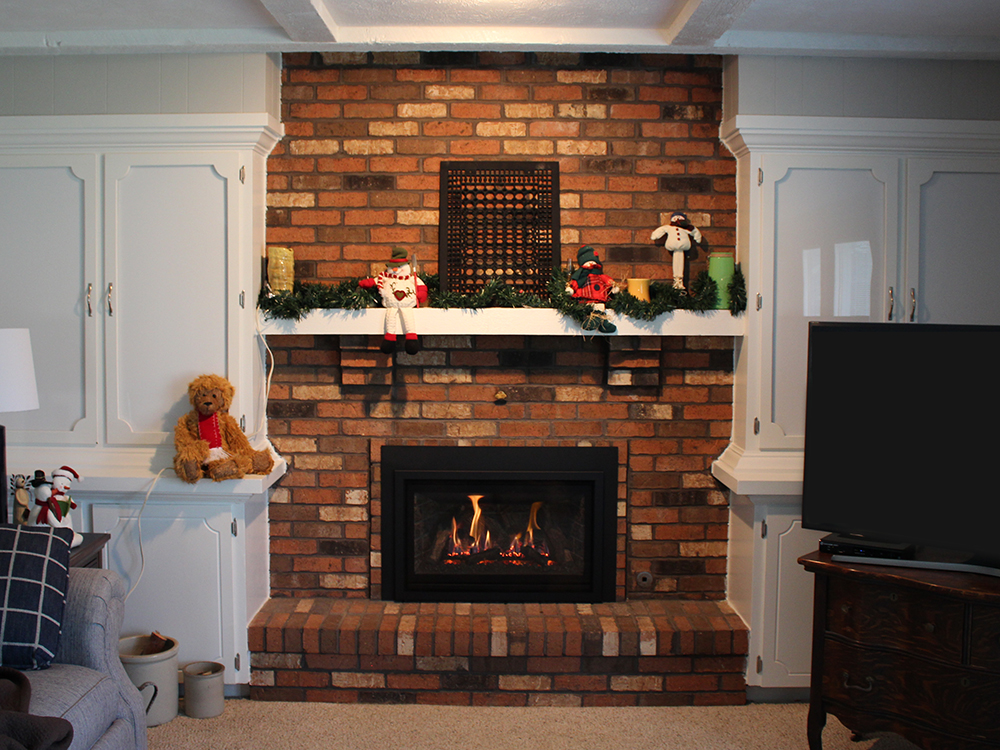 These homeowners kept their traditional brick but updated their fireplace with a new Kozy Heat Chaska 29 L fireplace insert.