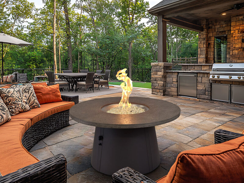 Our Cirvalo fire pit not only comes in several sizes, it also is available in natural gas or propane, as well as in multiple colors. Choose between the Smokey Oak, Relic Grey or Fossil Brown glass fiber reinforced Supercast top to find a table to fit your desired aesthetic.