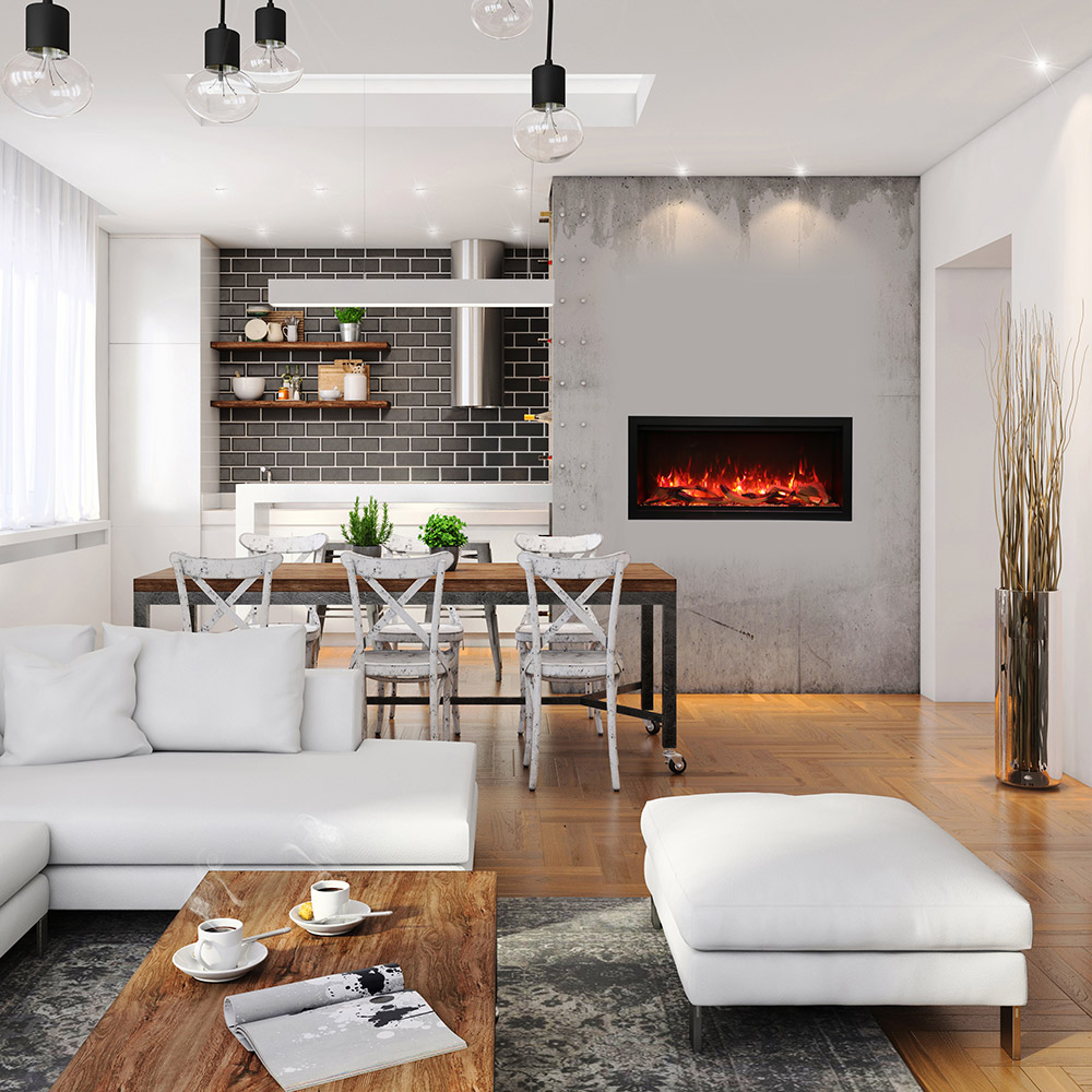 The amazing Symmetry XT electric fireplace, by Amantii, boasts their largest viewing areas yet! Unencumbered by unsightly venting and red glowing grills, the SYMMETRY-XT features a stunning true clean face display.