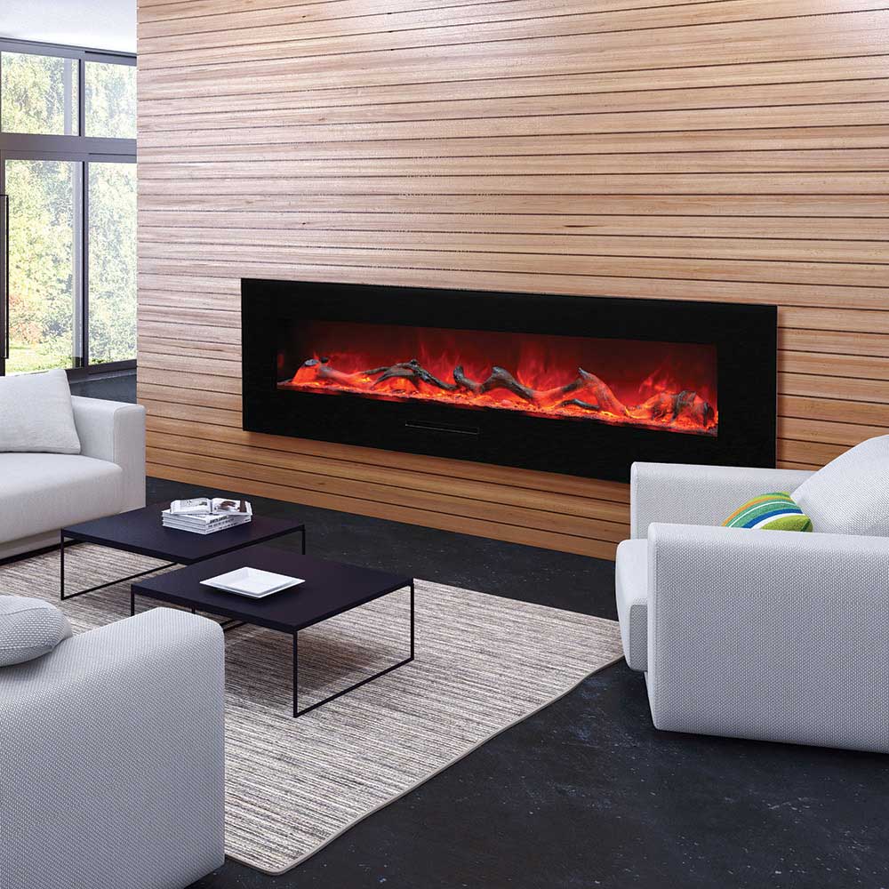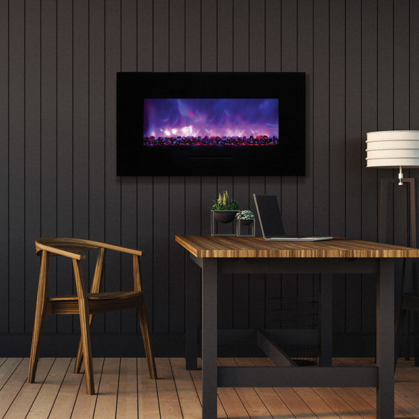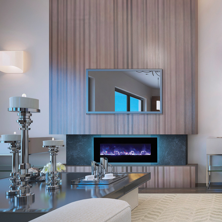 The impressive Wall Mount series is a stunning electric fireplace featuring Amantii’s exclusive fire & ice flame presentation. Heat is emitted from a single slot in the face of the surround. 13 colors of surround back-lighting illuminate spaces creating even more ambience. All Built-In Flush Mount / Wall Mount fireplaces come standard with a driftwood style log set and optional decorative media of EMBER or FIRE & ICE® media are available for purchase.