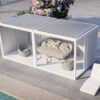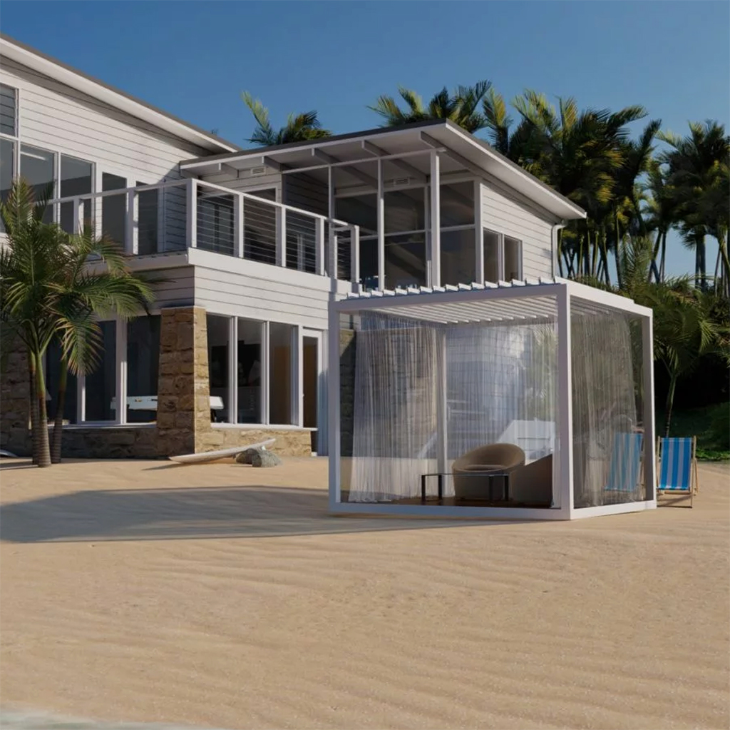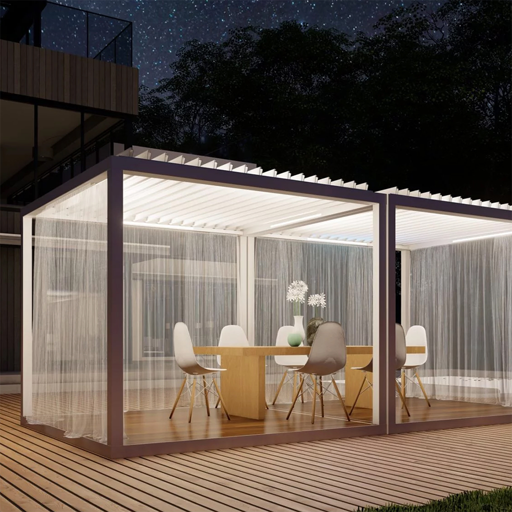Our Azenco Outdoor K-Bana pergola is crafted from the best grade of powder-coated aluminum and hardware to withstand the unpredictable midwestern weather. They come in 2 standard sizes and have ample add-on features for you to choose from.