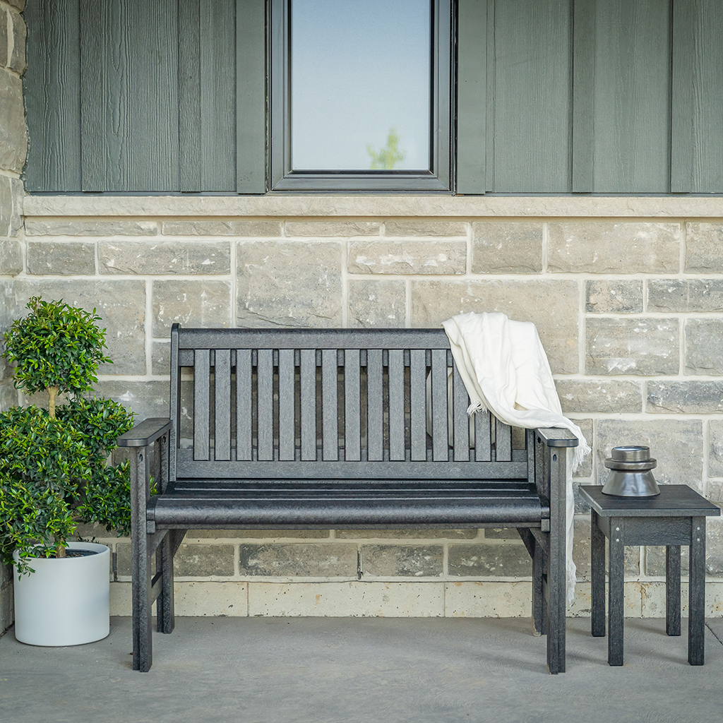 Bring your patio or front porch together with an inviting garden bench built to last! Crafted from a recycled plastic lumber, you will no longer have to worry about slivers, rot, cracking or peeling.