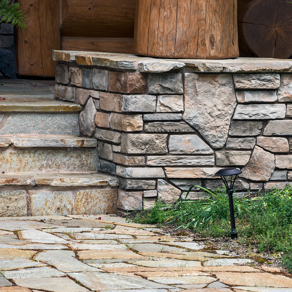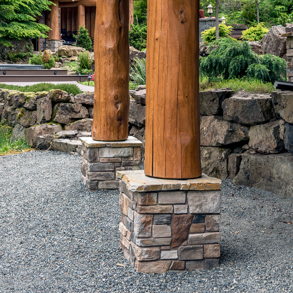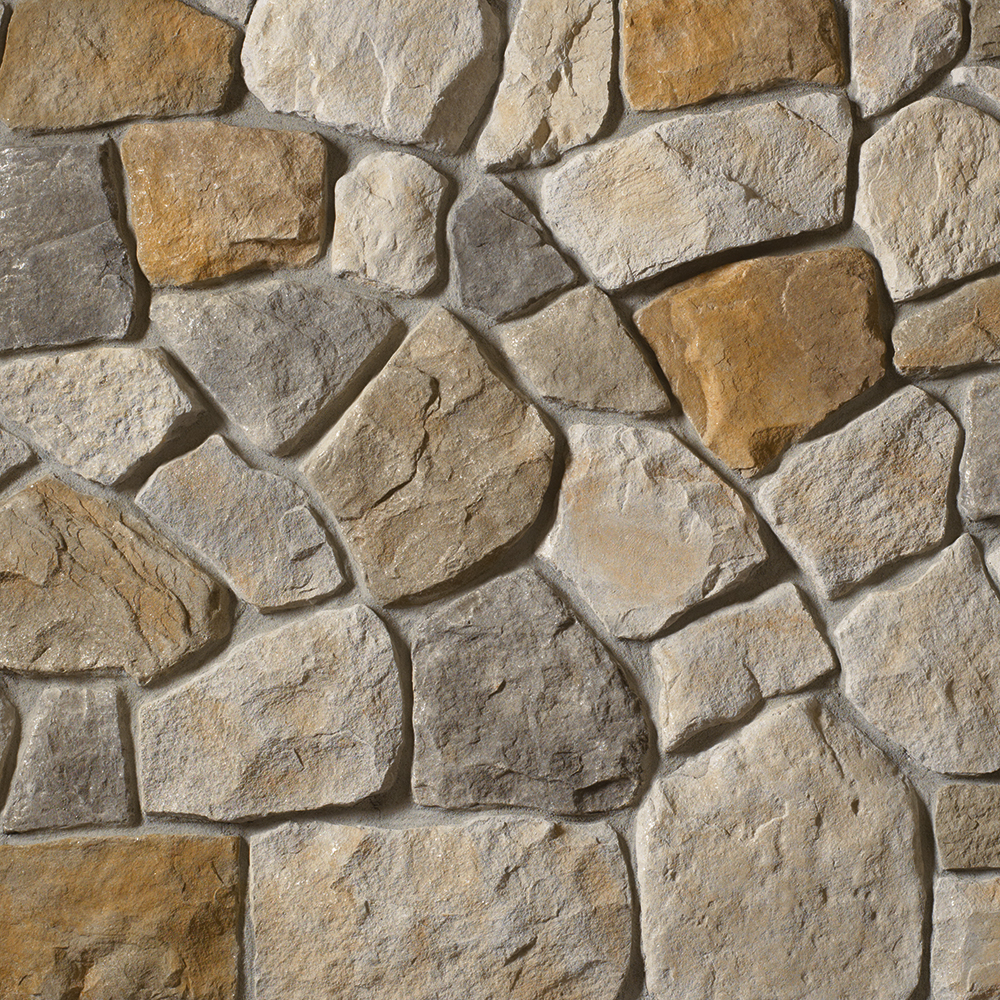 The rugged look of Dressed Fieldstone complements any natural environment. Its rich texture and range of color enhance a multitude of architectural designs.