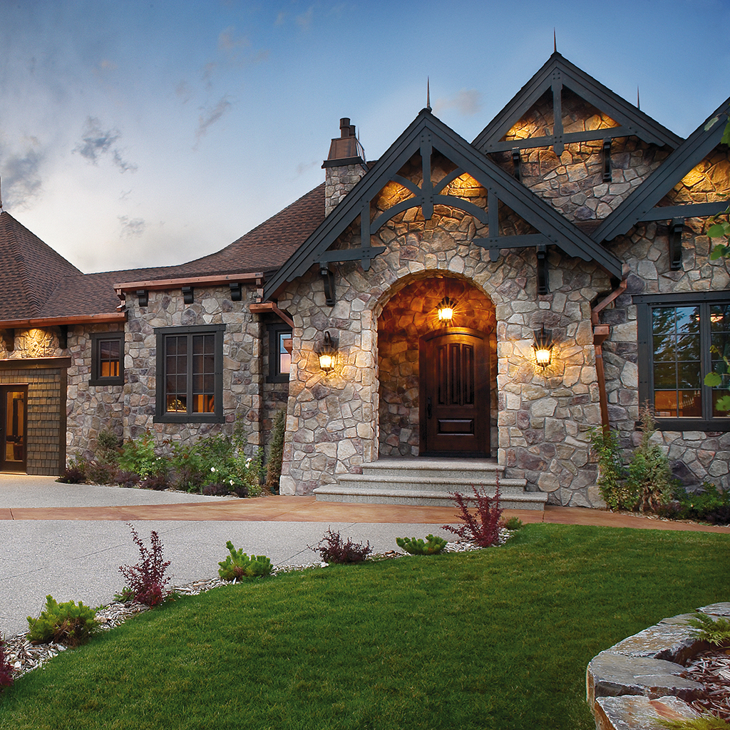 The rugged look of Dressed Fieldstone complements any natural environment. Its rich texture and range of color enhance a multitude of architectural designs.