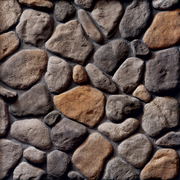 Randomly shaped River Rock has the warm and inviting look of stones rounded by years of tumbling in a northern forest riverbed. Comfortable and timeless, River Rock can be used to accentuate a variety of interior and exterior designs.