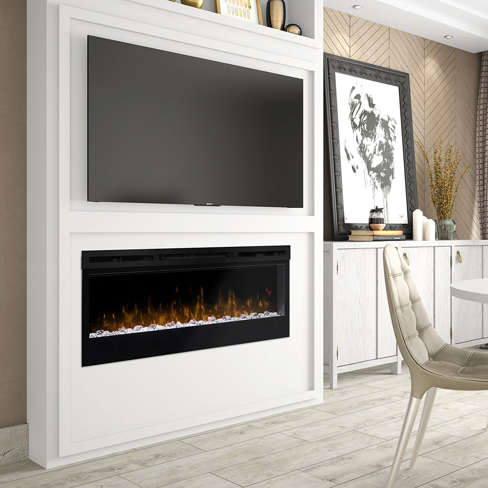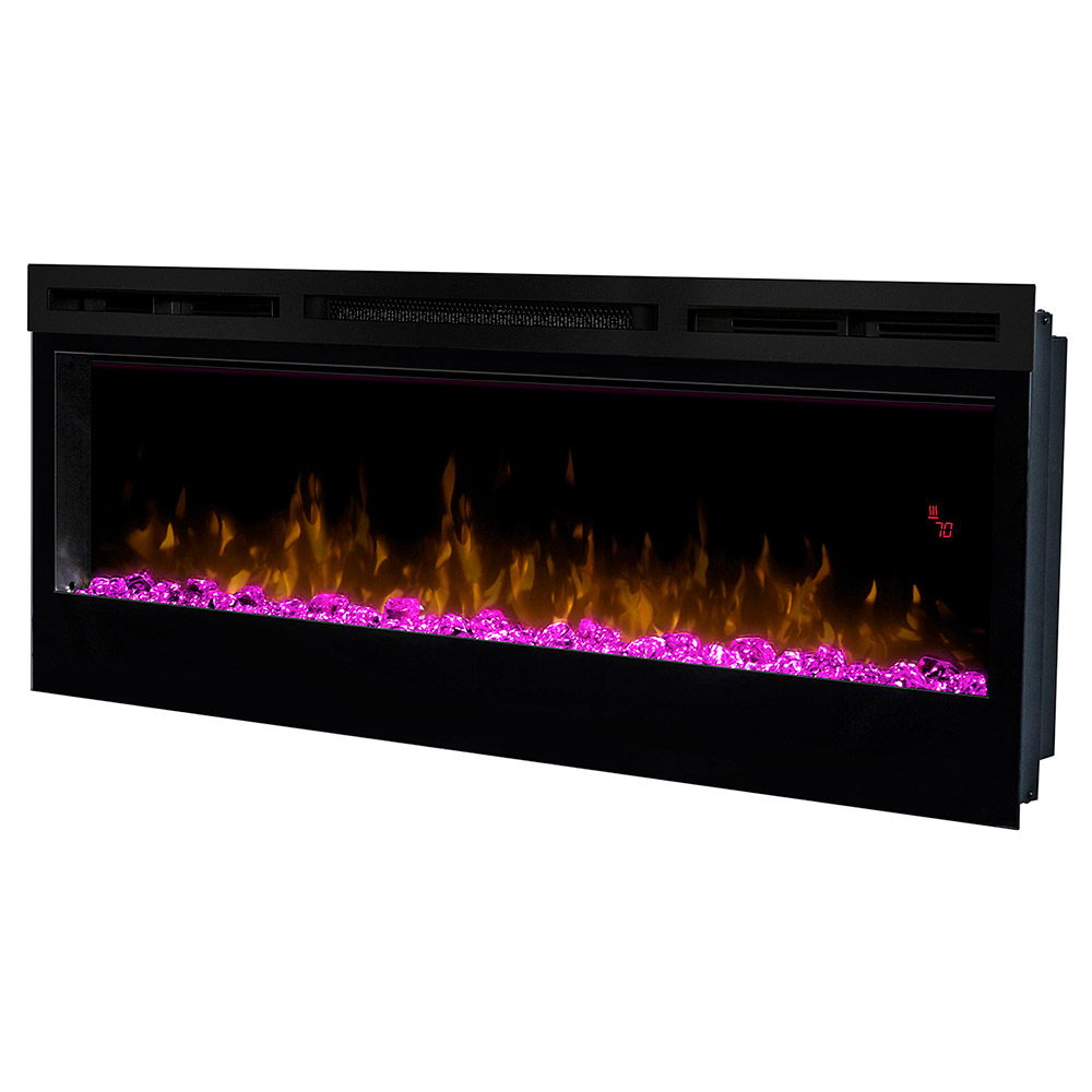 Sparkling with intensity in a full spectrum of RGB colors, the Prism flame effect illuminates the diamond-like acrylic ice ember bed in a show-stopping effect. Complete with a powerful and efficient fan-forced heater, this fireplace will add comfort and ambiance to any space. Plugged in or direct-wired, hung on the wall or built-in; the Prism is beautifully versatile.