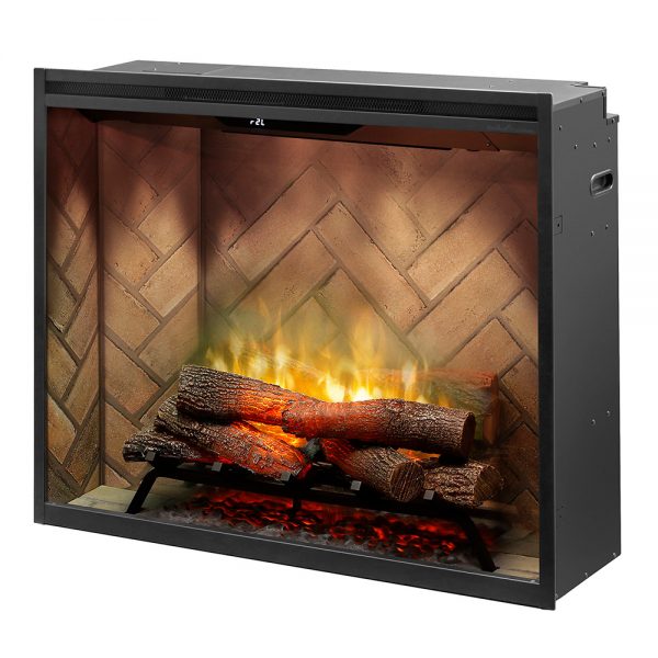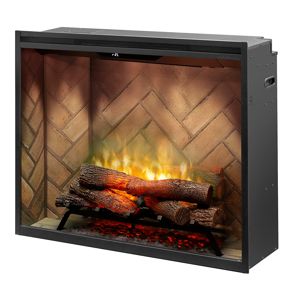 Revillusion is a completely new way of looking at fireplaces, and changing the standard for electric. A clear view through the lifelike flames, to the full brick interior, captures the charm of a wood-burning fireplace.