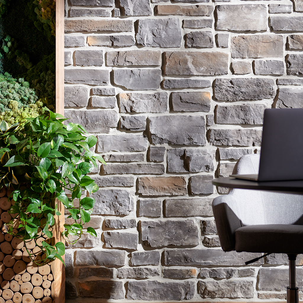 Defined by long, linear pieces of varying heights and a distressed, aged surface, each stone is shaped to ensure tight dry stack installation and gives moderate shadow relief, even when grouted.