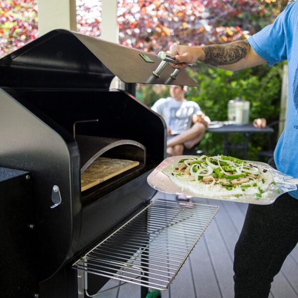 Convert your GMG Pellet Grill into a Wood-Fired gourmet pizza oven. The pizza oven attachment captures and funnels the heat from the Firebox directly up and into the steel baking chamber encasing the pizza stone. This process raises the internal temperature of your pellet grill to that of a real wood burning pizza oven.