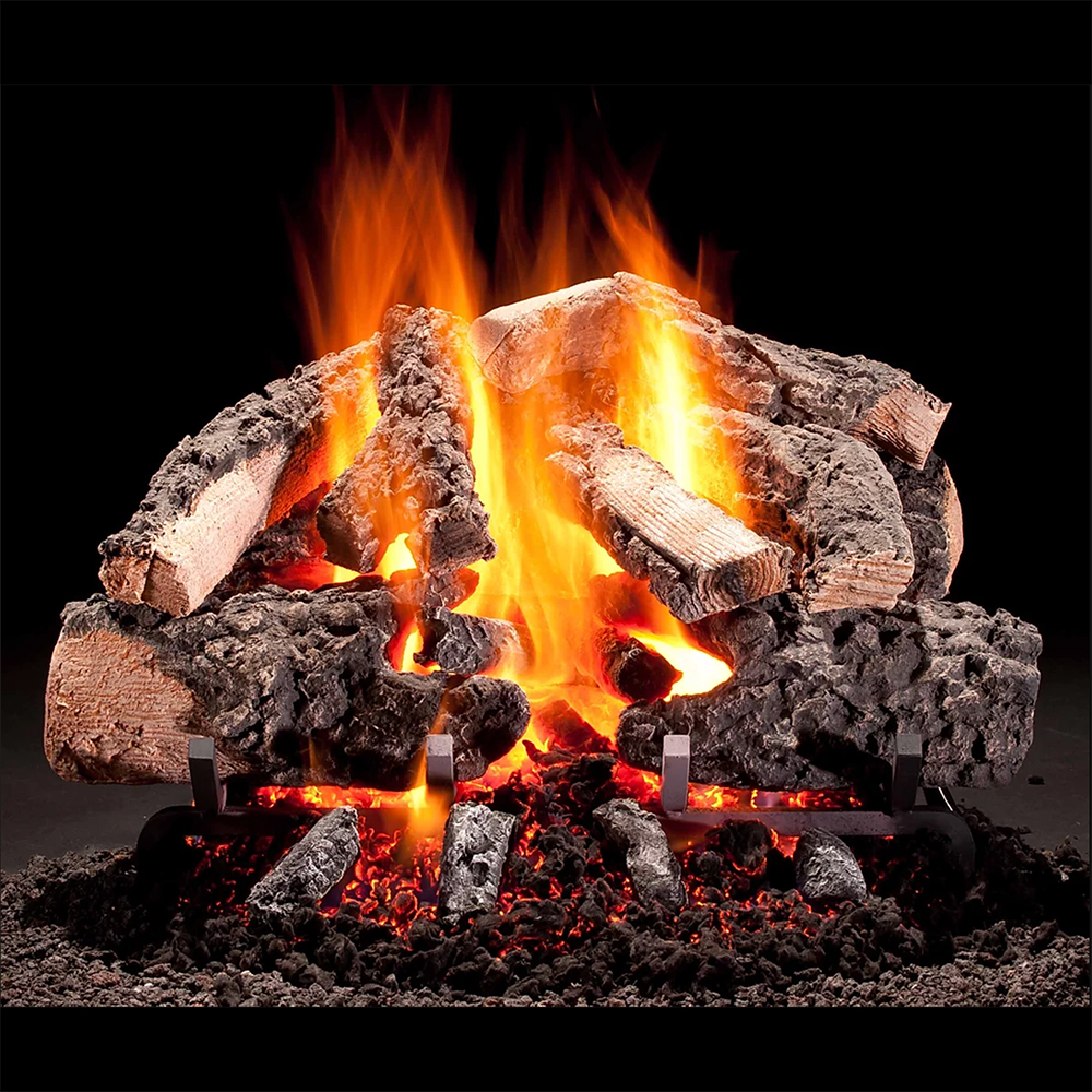 The Woodland Timbers feature an open view ember bed for beautiful glow with logs that have deep bark texture and lighter colored split areas
