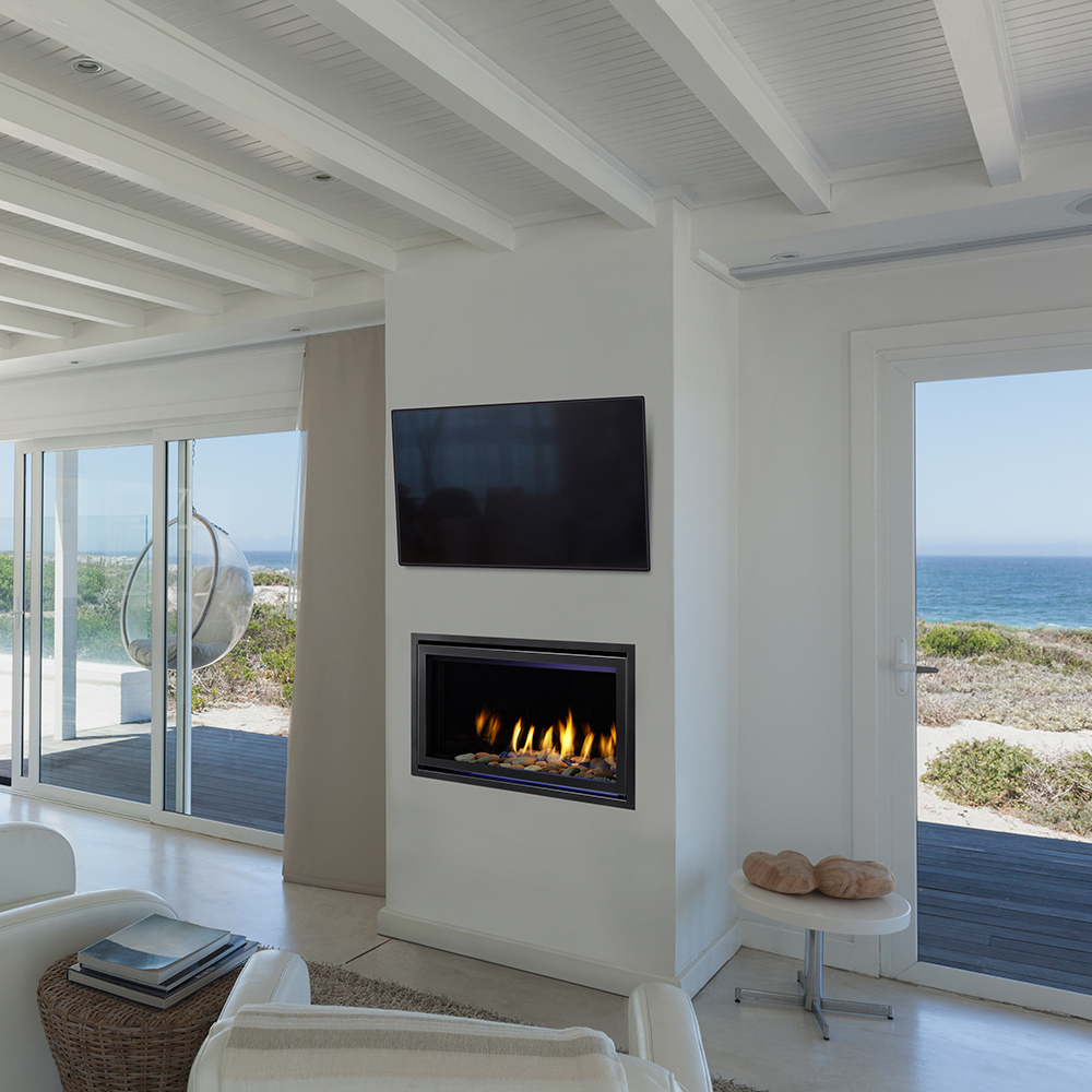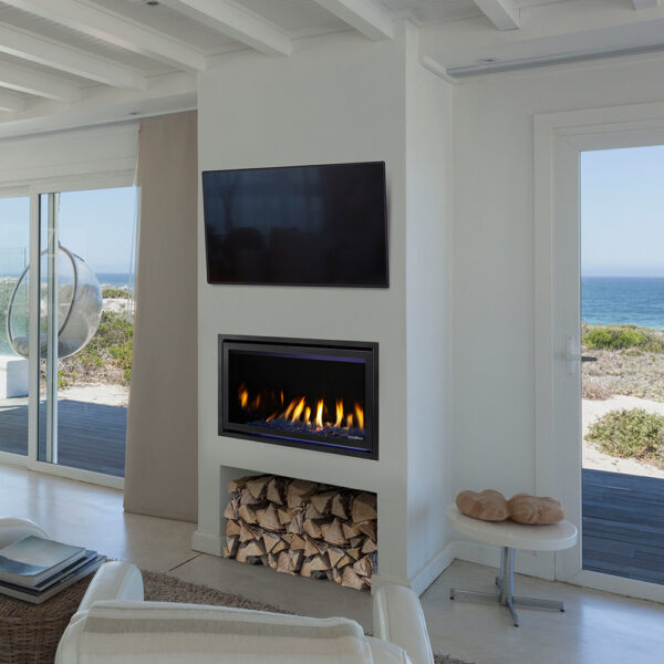 Reap the benefits of form and function with our Cosmo fireplace! Clean lines and elegant ambiance are offered from this modern unit, making it the true focal point of your space. A linear design and long ribbon flame form a broad and warming firescape.