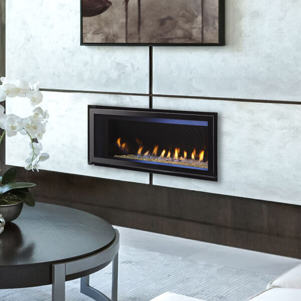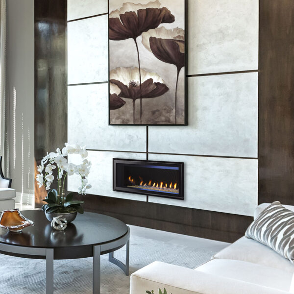 Reap the benefits of form and function with our Cosmo fireplace! Clean lines and elegant ambiance are offered from this modern unit, making it the true focal point of your space. A linear design and long ribbon flame form a broad and warming firescape.