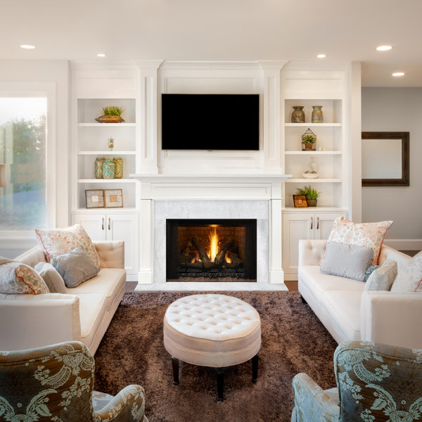 Capture your unique style by framing your fireplace with a well-crafted flush wood mantel coordinated with beautiful stone. Create a warm, welcoming space in your home that showcases your style and makes you fireplace the focal point of your room.