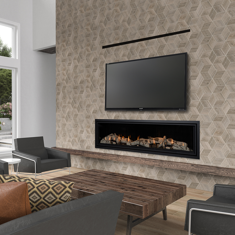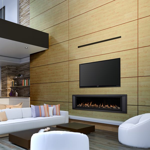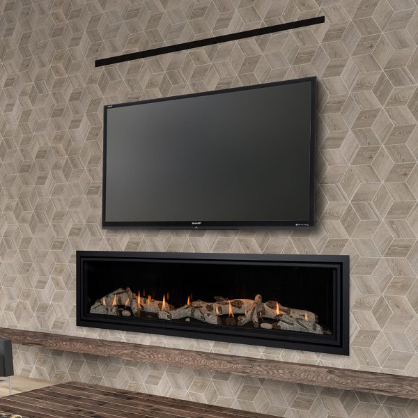 Linear Fireplace with many different styling options that make this fireplace truly customizable. The Callaway 72 comes with many options for Heat Distribution. The Callaway 72 with an optional Komfort Zone Kit or a vented cavity. The Komfort Zone Kit & vented cavity gives you the ability to hang your TV safely above your fireplace and bring combustibles right up to the finishing edge.