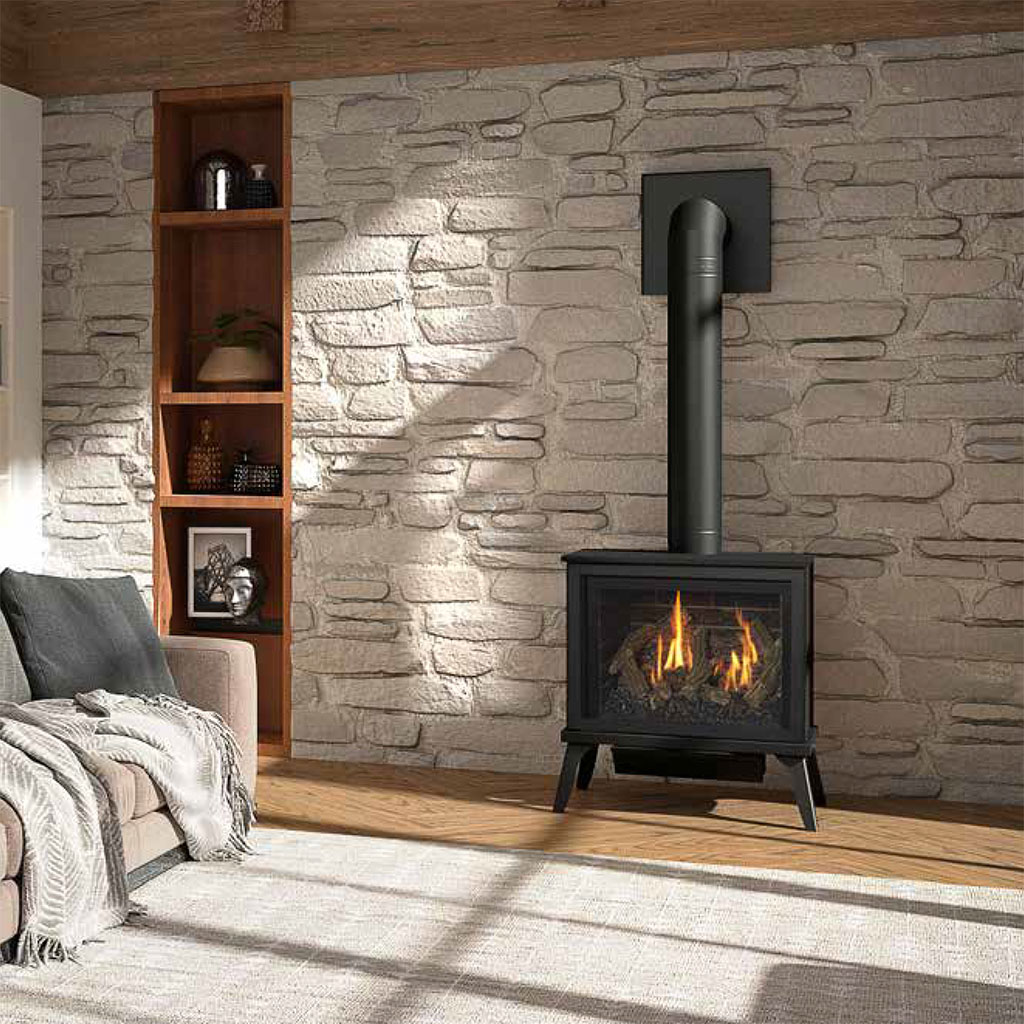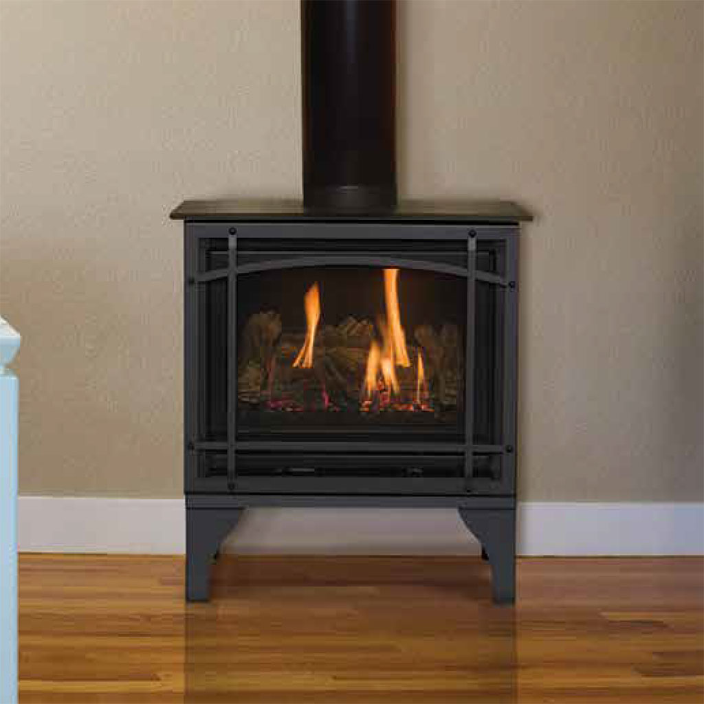 Bring the heat and the charm with our Kozy Heat Lakefield XL free standing gas stove. Because it’s a free standing, direct vent option, there’s no need for a chimney, as it can connect to the exterior of your home through venting while allowing outside air to circulate around the firebox.