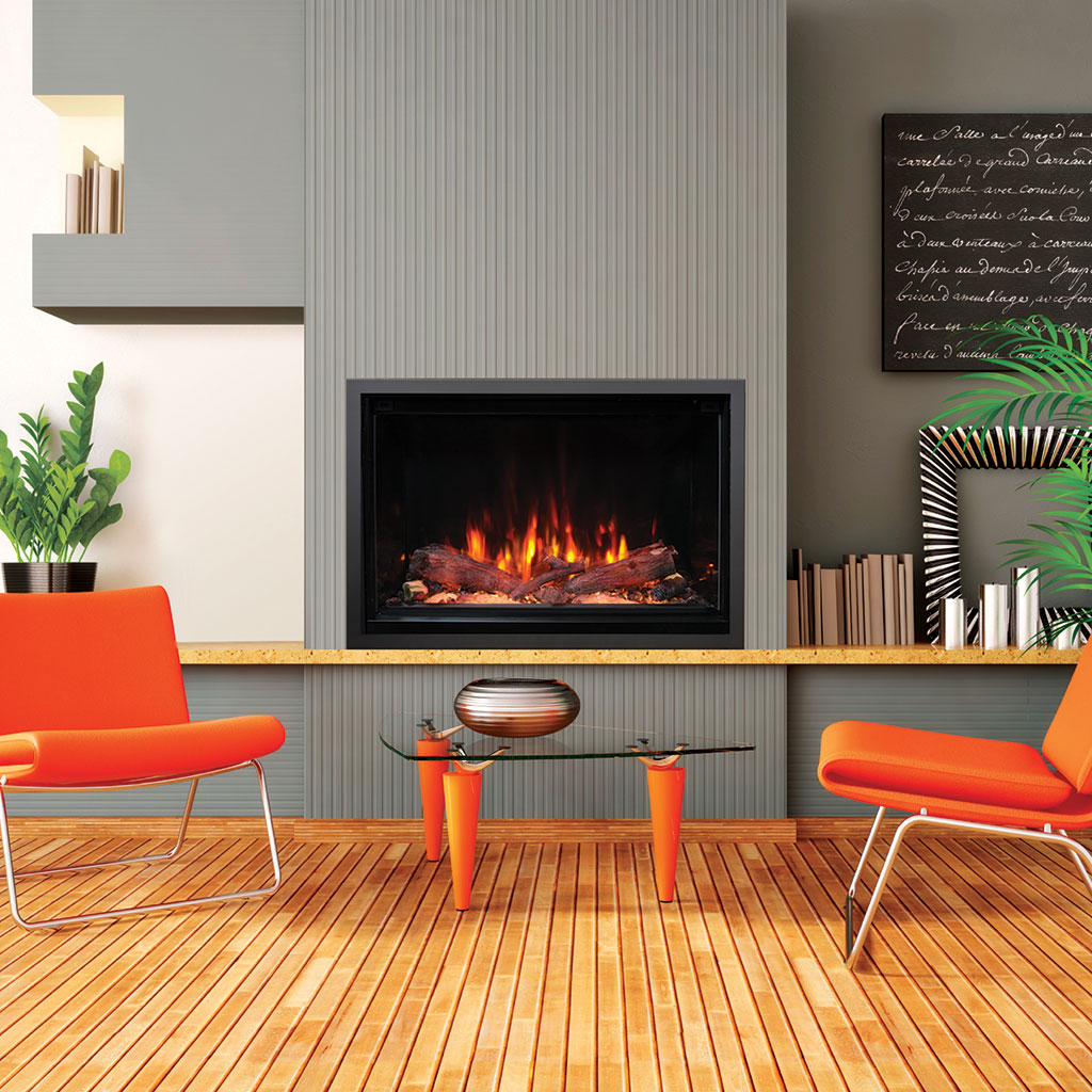 Our Kozy Heat Ossero eSeries electric fireplace insert comes in 2 sizes: 29 and 34. Traditional and birch log sets are available to ensure it blends in seamlessly with your space.