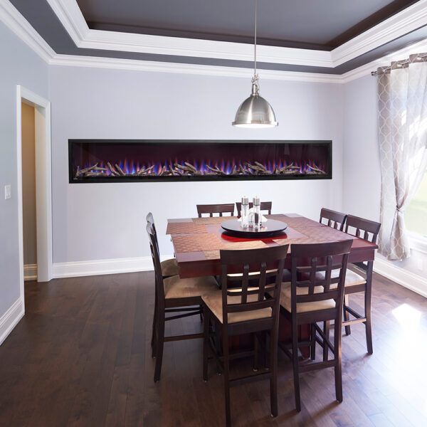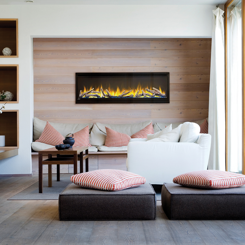See the fireplace, not the frame with Napoleon’s AlluravisionT Series linear electric fireplaces. They stand out from the rest with their nearly frameless viewing area which highlights the unique flame colors. Set the mood with yellow, orange, blue and multicolor flames at the push of a button. Easy to use, these electric fireplaces are plug and play – just hang on the wall and plug them in.