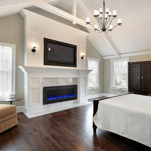 You don’t need a specialist or a gas fitter for this expansive beauty, just hang on the wall and plug in for instant transformation of your space. Traditional orange flames, or cool blue flames, or a combination of the two will set the moodPlace this electric fireplace anywhere you want to make a huge impact, perfectly suited for either your home or a commercial setting.