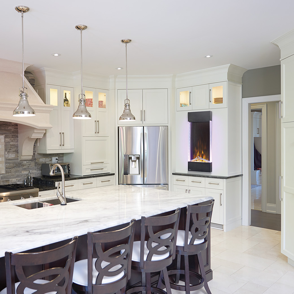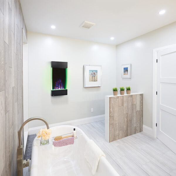 Create a stunning focal point with Napoleon’s Allure Vertical Electric fireplaces. Available in 2 sizes, these fireplaces are not just perfect for any room but for nearly every room! The vertical design hosts a collection of features including an LED ember bed, flames and side accent lights with more than 6 color options.