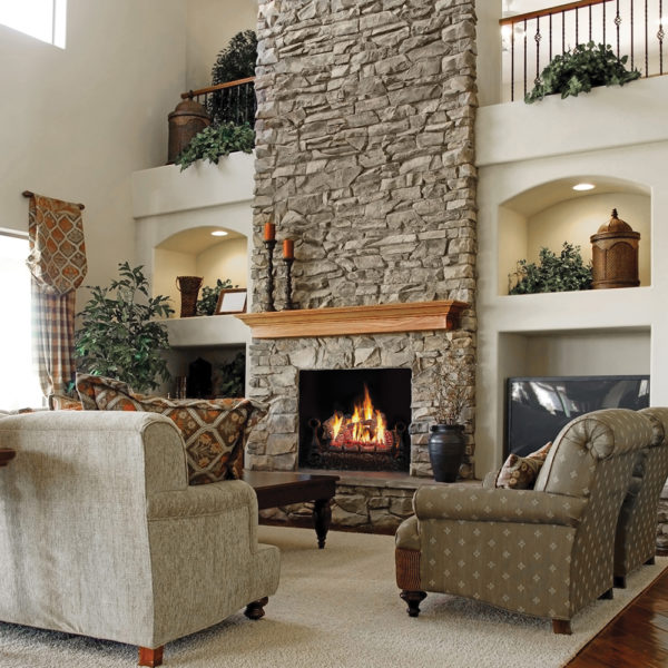 Enjoy the warmth and feeling of a wood fire without the need for wood or even a chimney with our Napoleon Fiberglow vented gas log set. With realistic, high flames, you’re sure to enjoy relaxing beside your hearth.