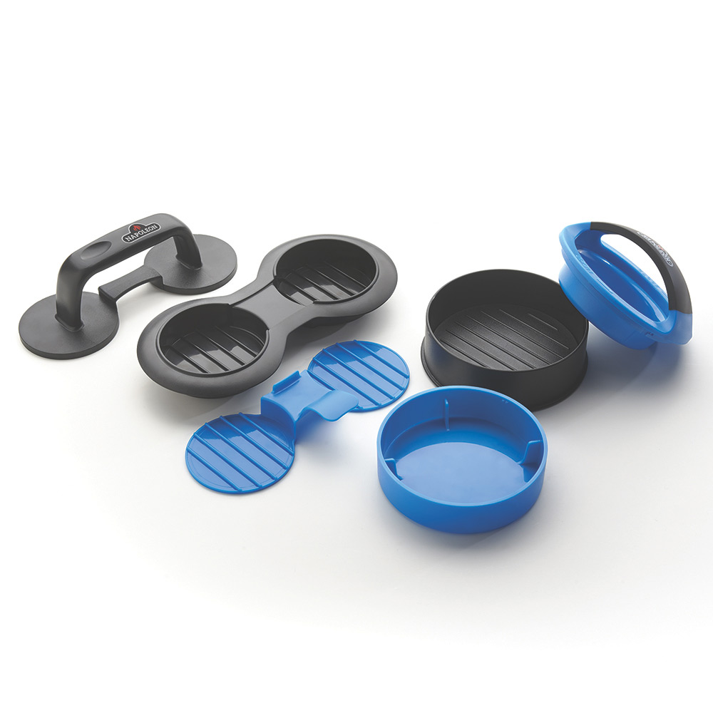 The Napoleon Gourmet Burger Press Kit lets you easily form perfectly round burgers and sliders. The nonstick surface and removable bottom plate allows you to easily extract them. The full sized press also makes stuffed burgers like a gourmet restaurant. Both presses are non-stick and dishwasher safe.