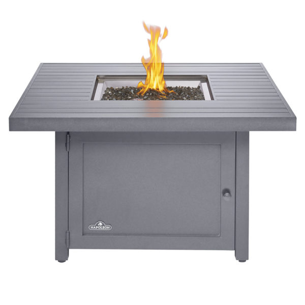 A stylish, contemporary design sets the Napoleon Hamptons Square Patioflame Table apart from the rest. The beachy – casual construction, and driftwood color match any décor. Safe and fuel efficient, the Hamptons Square Patioflame Table features a thermocouple valve that cuts the gas when flame is interrupted, meaning that if a gust blows the flame out, or you forget to shut the gas when you’re done, no gas will be wasted.