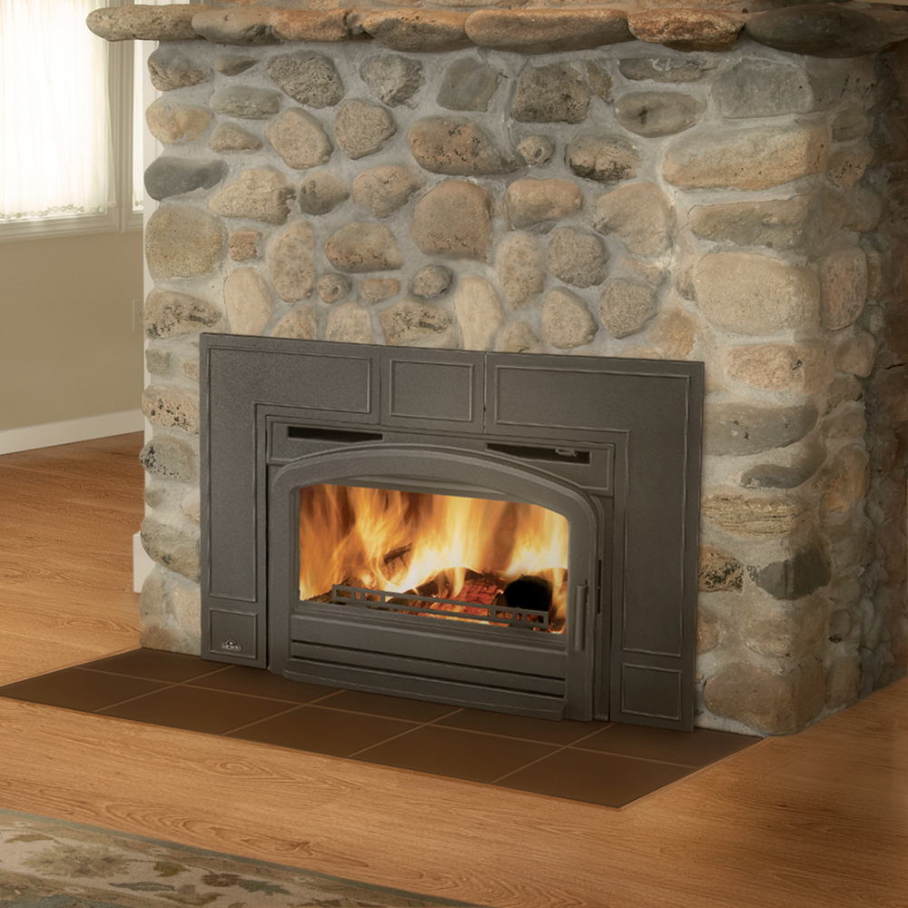 This wood burning insert has a traditional flush mount front with a cast iron surround in addition to a contemporary flush front, ensuring it can fit your desired aesthetic. Complete with a removable painted black log retainer, this could be the perfect heating solution for your space.