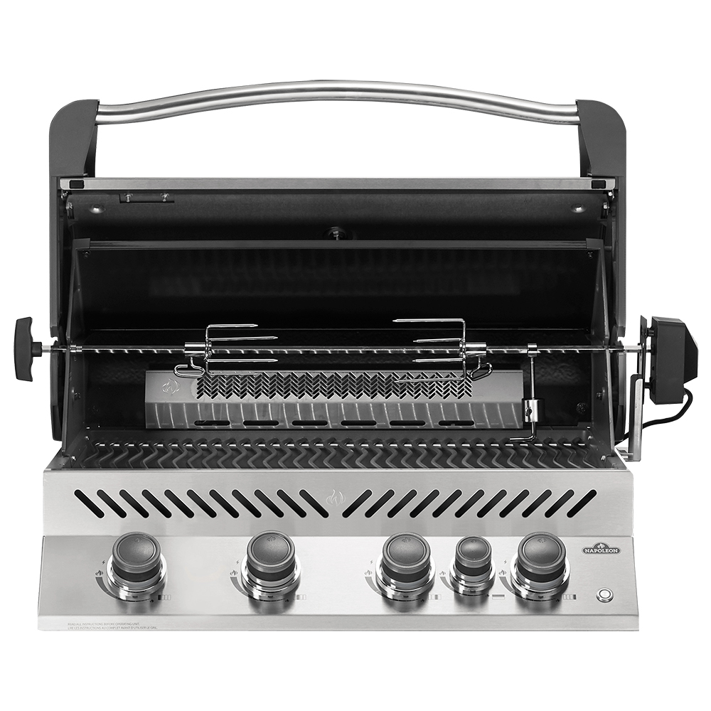 When building your own custom outdoor kitchen, there’s nothing like adding our built-in Prestige 500 RB gas grill head. The stainless steel grids cradle your food, providing even heating. With the Safety Glow control knobs turning red when a burner is in use, you’ll never forget your grill is on again.