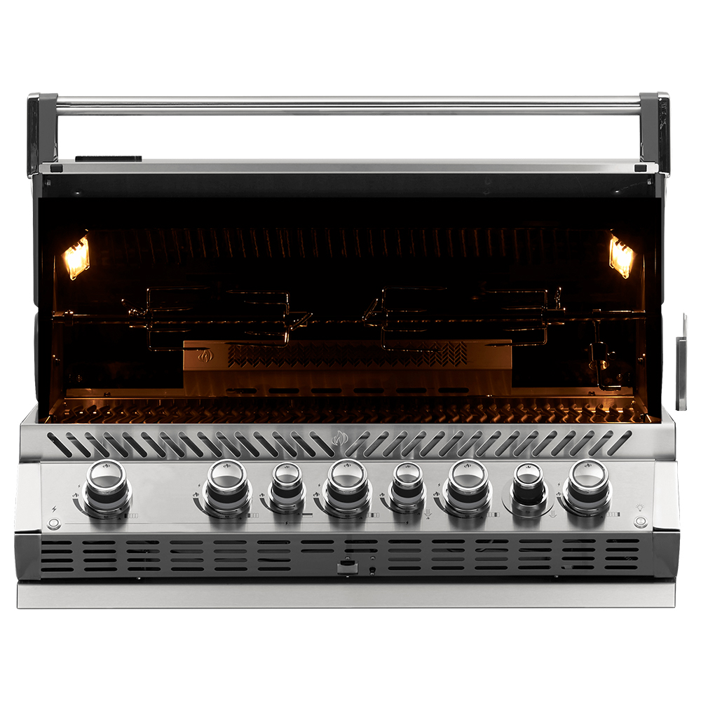 A gourmet outdoor kitchen deserves to have a big, beautiful grill. With our Prestige Pro 665RB gas grill, you’ll get just that! Grilling after dark is easy with its LED spectrum NIGHT LIGHT control knobs. The convenient Safety Glow feature turns the burner knobs a bright red when in use to ensure you never forget it’s on again.