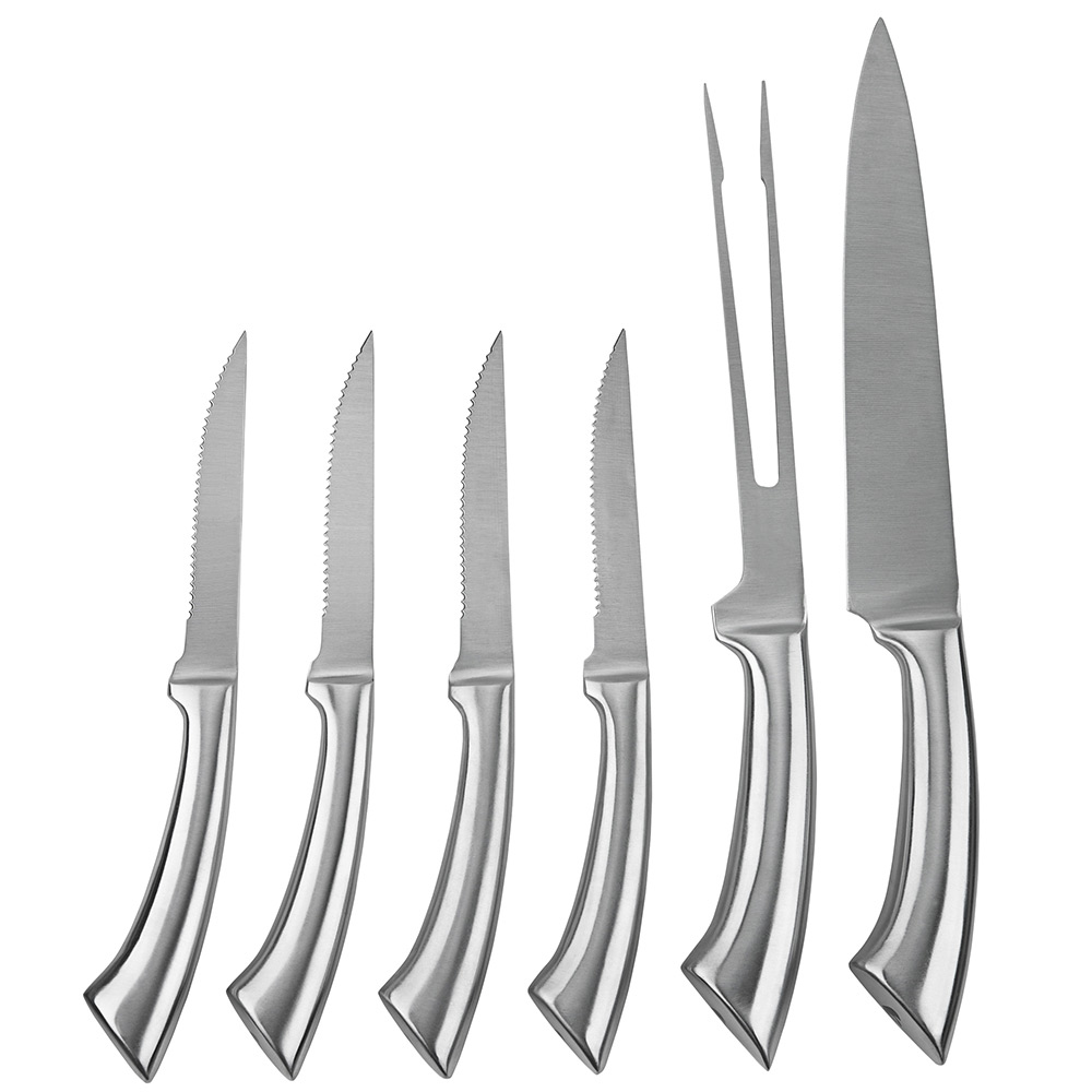 Napoleon’s PRO Series Professional Knife Set has everything you need for carving your meat perfectly. The Professional Knife Set comes with a 13.5 inch sharpened carving blade, a 12.75 inch carving fork and four 9.5 inch serrated steak knives. Each of the pieces in this set are made entirely out of stainless steel. That means that they will last a long time.