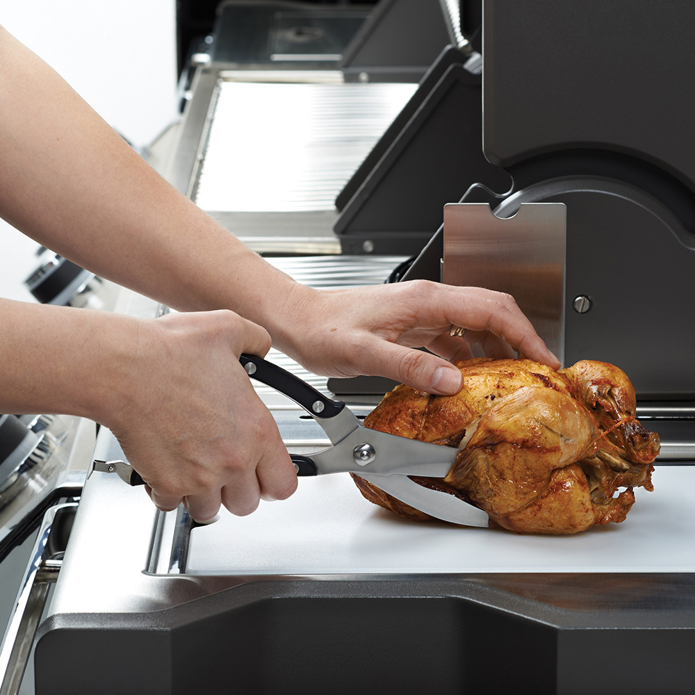 A serious grilling master’s must-have tool, the PRO Poultry Shears by Napoleon are built to easily cut through poultry, ribs, crab and other tough meats and bone. Easy to use, these shears have spring tension for improved control and comfort while in use.