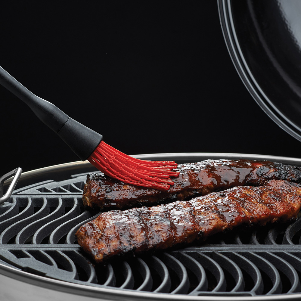 The Napoleon PRO Silicone Basting Mop is the perfect vehicle for getting your flavorful sauces onto that giant roast or racks of ribs, or coating those grilled chickens in a hurry. The heat resistant silicone head is specially built with textured knots that hold extra sauce and even liquids like vinegars, and wines.
