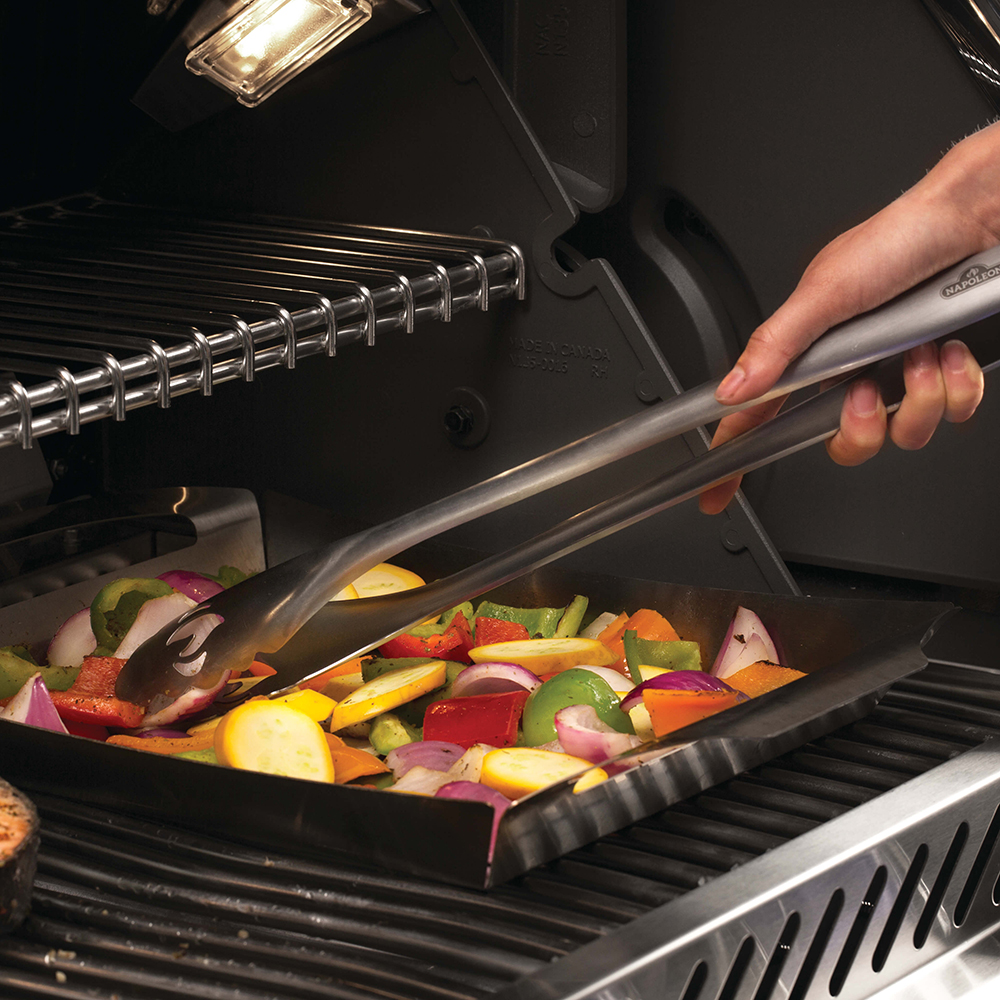 Napoleon’s PRO Stainless Steel 2 Piece Toolset is not only functional, but also elegant. The curved handles sit lightly and comfortably in hand while you grill up a feast fit for the king (and queen) of the BBQ.