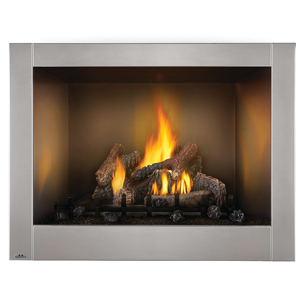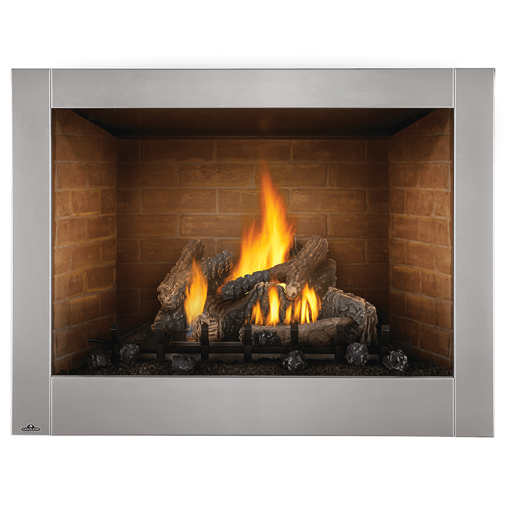 Create a breathtaking focal point in your backyard with this outdoor gas fireplace. Napoleon’s Riverside 42 Clean Face fireplace is weather resistant due to its 100% stainless steel construction for maximum durability. Featuring Napoleon’s exclusive PHAZER log set and stainless steel clean face surround, you are bound to enjoy an unobstructed view of the beautiful flames. Let your imagination flow with endless possibilities – no venting or chimney requirements means installation is simple and easy.