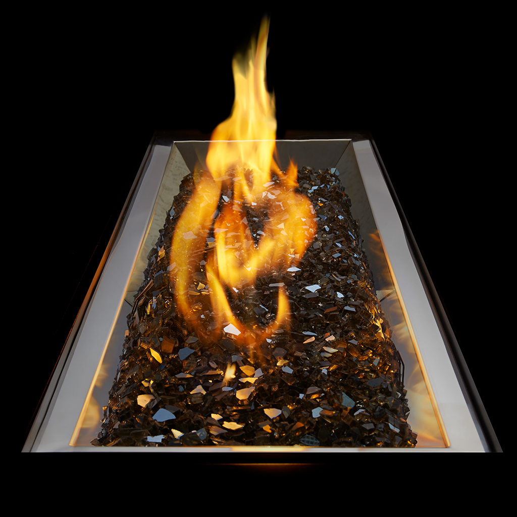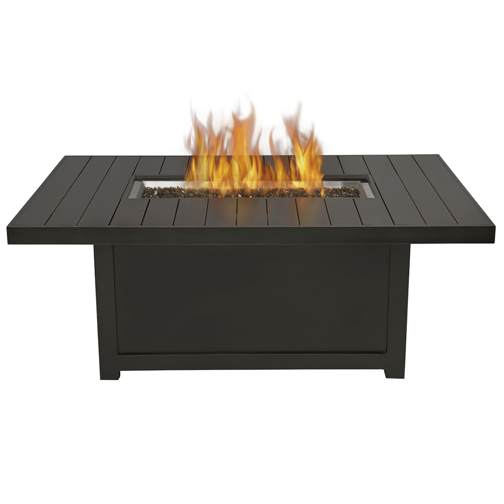 It features a classic, linear design that will match any outdoor décor. The rustic bronze finish gives an antique style, while the linear gas burner adds a modern flair with a ribbon of flame. A stylish glass ember bed reflects the light of the flames warming you and providing a cozy atmosphere.