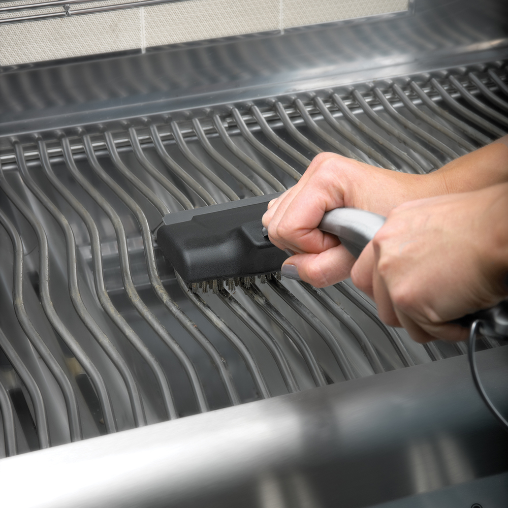 Use the Napoleon PRO Series Stainless Steel Grill Brush to keep your grill’s stainless steel cooking girds clean. A clean grill is a happy grill. You should brush the stuck on foods from your grill with a grill brush after every time you grill, while the grill is still hot, and again before grilling your next meal. The stainless steel bristles on the Stainless Steel Grill Brush will not damage your stainless steel cooking grids but will last a long time. This Brush matches the rest of the PRO Series grilling tools.
