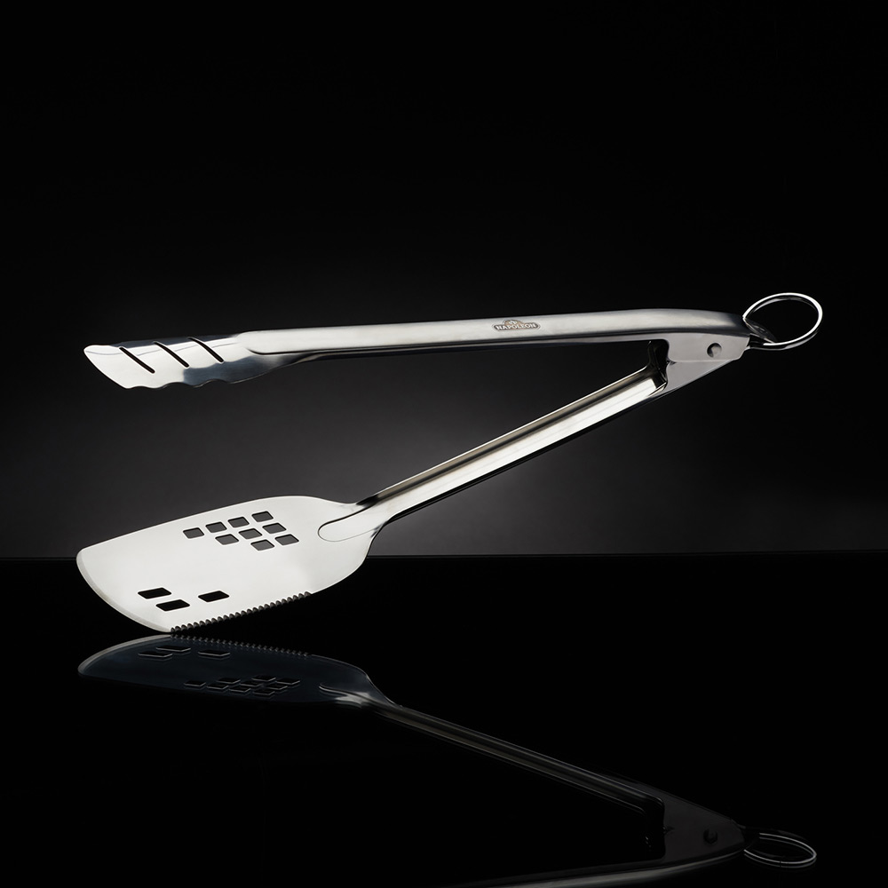 The grill tool your can’t live without. The Napoleon Stainless Steel Spatutong is a 2 in 1 multi tool for the grill, made of durable stainless steel and dishwasher safe. Use the spatula to easily manage larger food like steaks and burgers. The flat side of the spatula also has a beveled edge making it easy to get under cooking food, and a cutting edge to provide perfect portions after the food is done. Managing more delicate things with the aid of the tongs is easy.