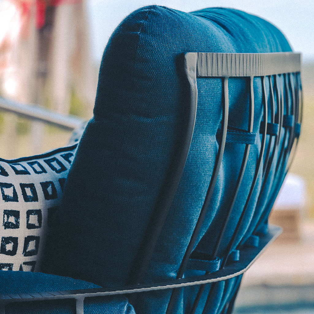 Our OW Lee Monterra lounge chairs are a customer favorite that is celebrated as one of the most comfortable outdoor seating options available. Its gracefully curved back flows into embossed flat-bar arms, forming a smooth, rounded silhouette that offers a cozy, nest-like feel.