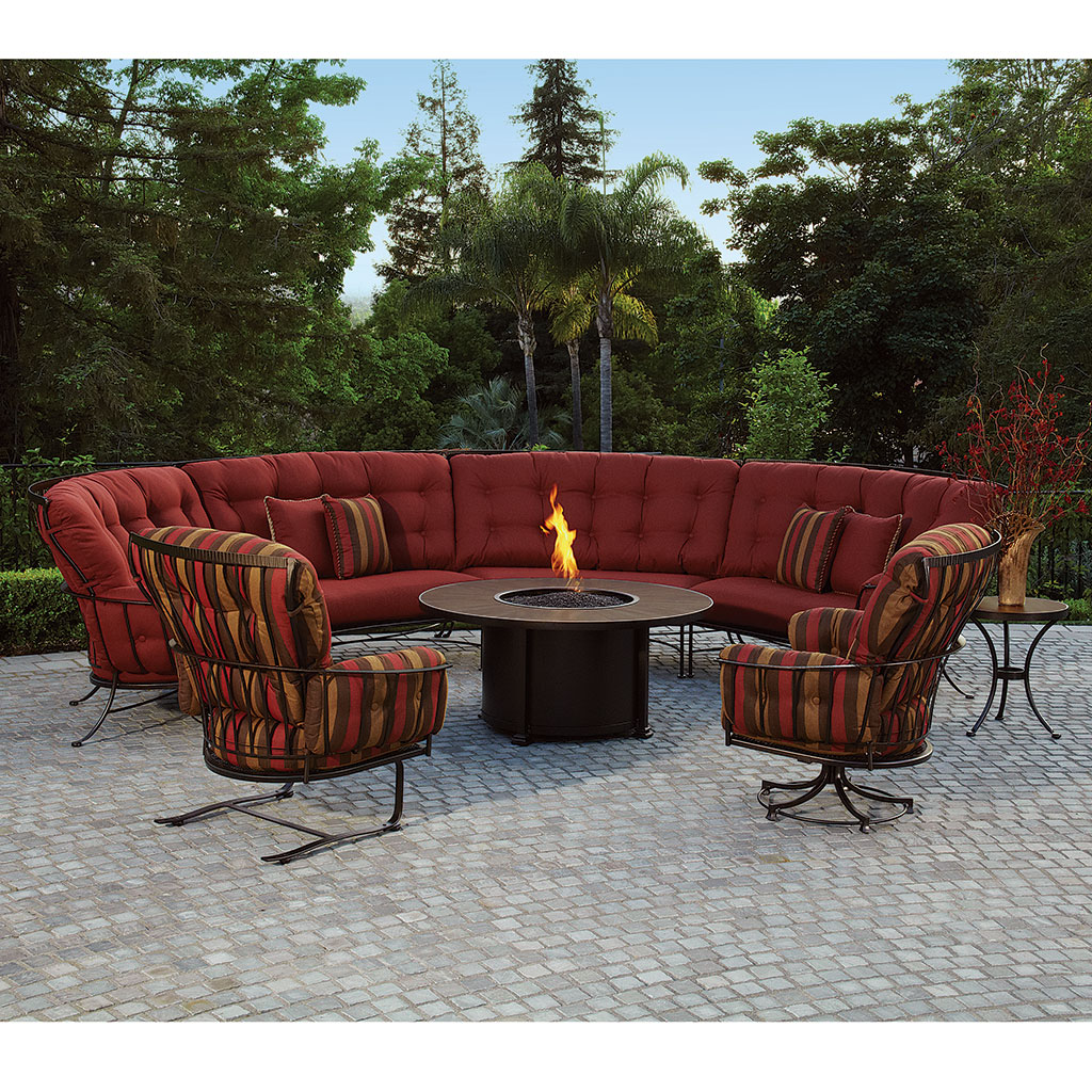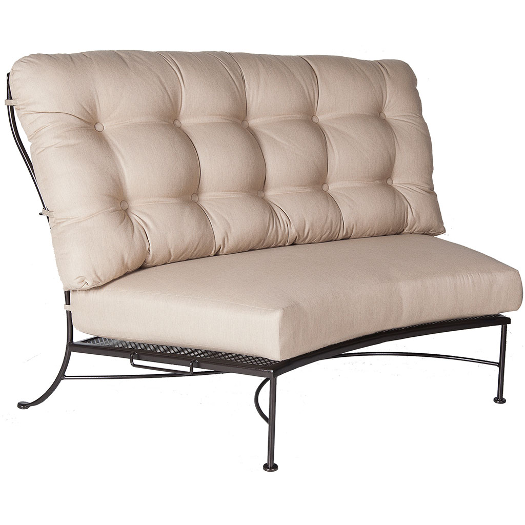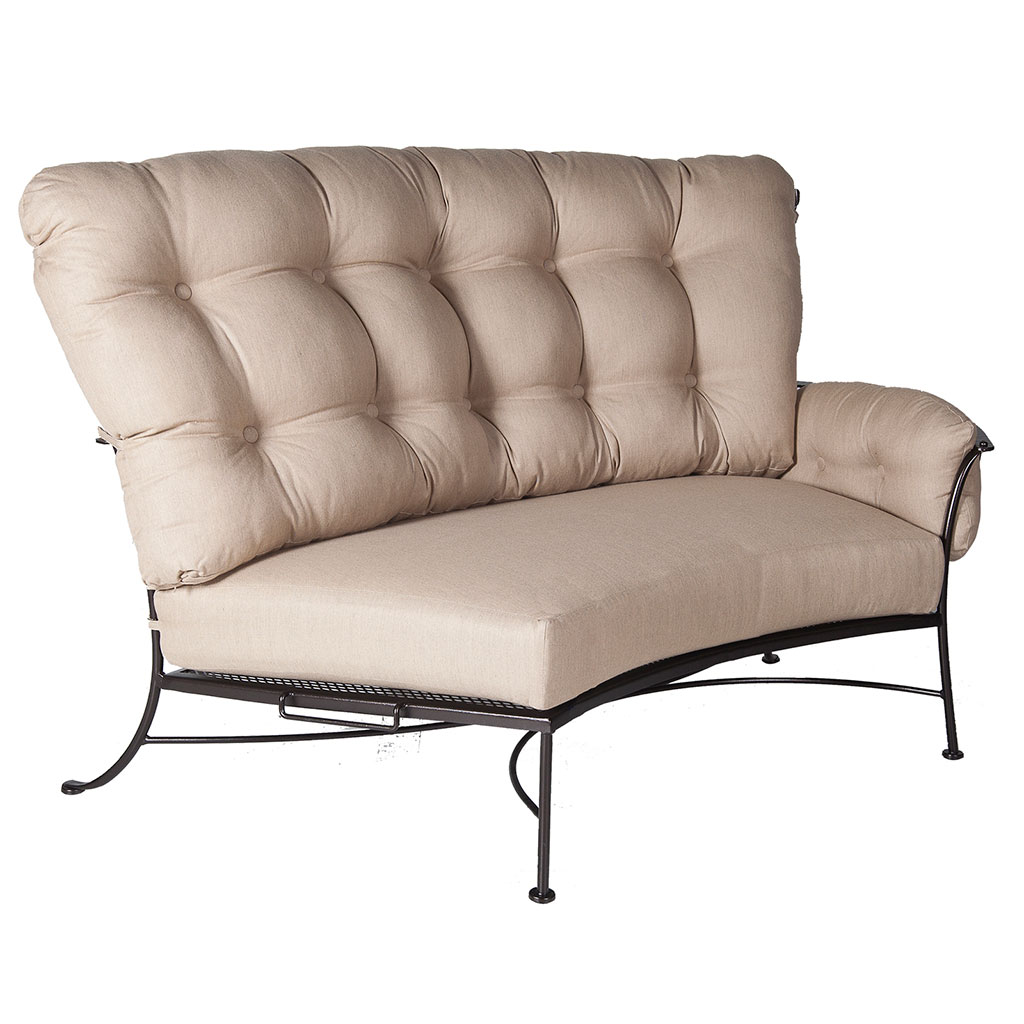 Our OW Lee Monterra sectional is a customer favorite that is celebrated as one of the most comfortable outdoor seating options available. Its gracefully curved back flows into embossed flat-bar arms, forming a smooth, rounded silhouette that offers a cozy, nest-like feel.