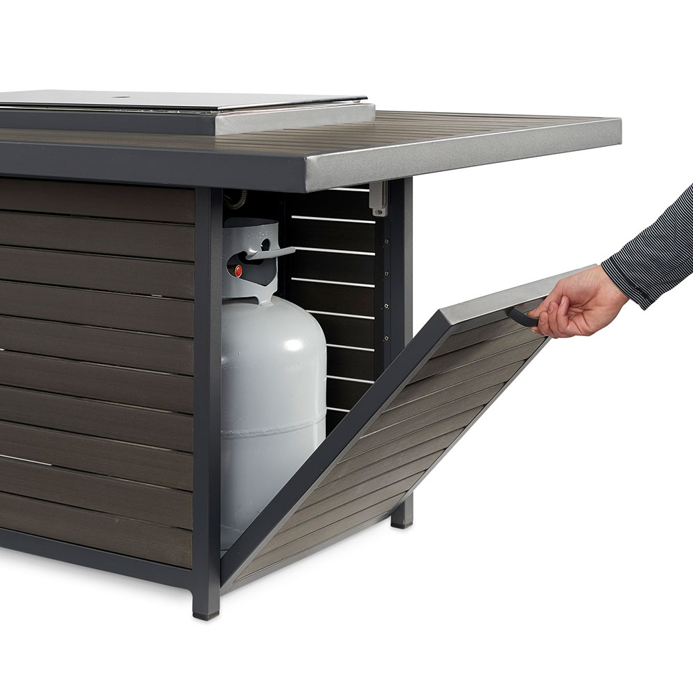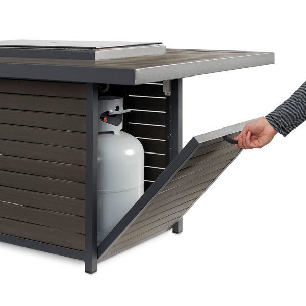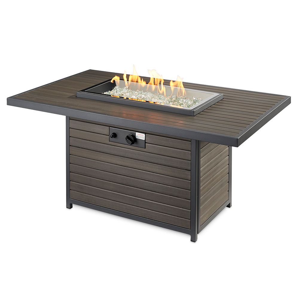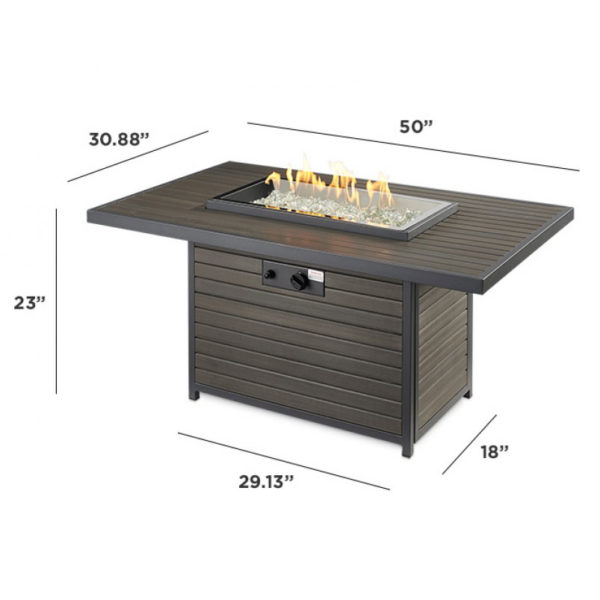 The easy to care composite deck top and base brings a modern, but warm look to your outdoor room. The unique elevated 12×24″ Crystal Fire Burner is UL listed for safety and will dazzle your guests.