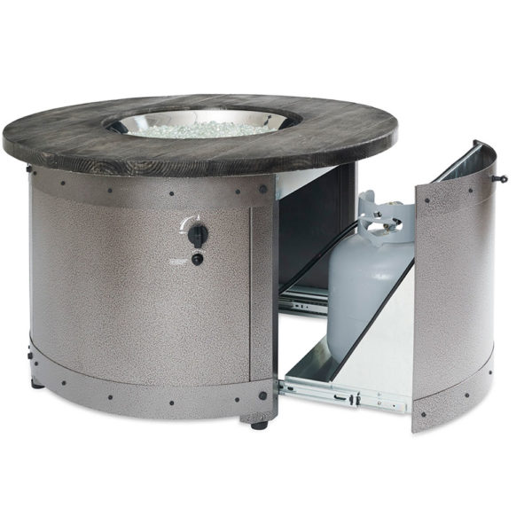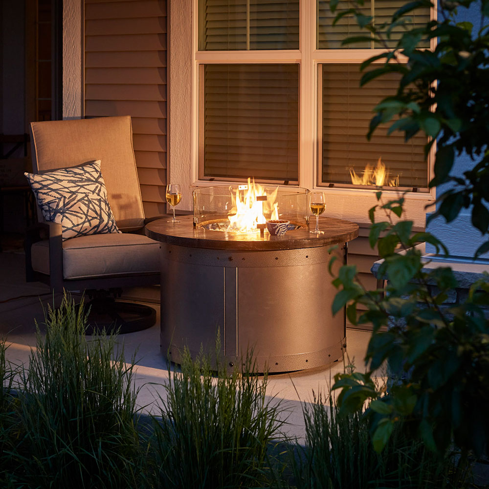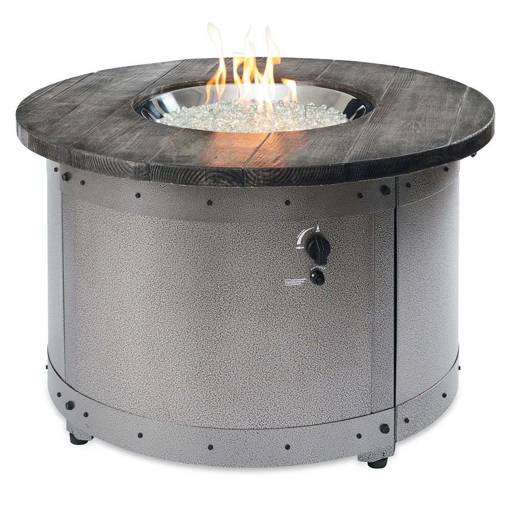 The Edison Gas Fire Pit Table combines industrial design with a unique, modern look. The powder-coated steel base accentuates the aged finish of the Weathered Grey Barnwood Supercast top to create a beautiful statement in your outdoor room. Take in the warm, mesmerizing feel of the glowing fire as you relax or entertain guests. The Crystal Fire Burner is UL Listed for safety.
