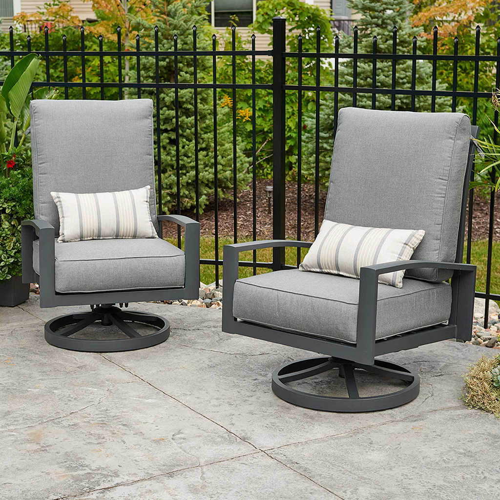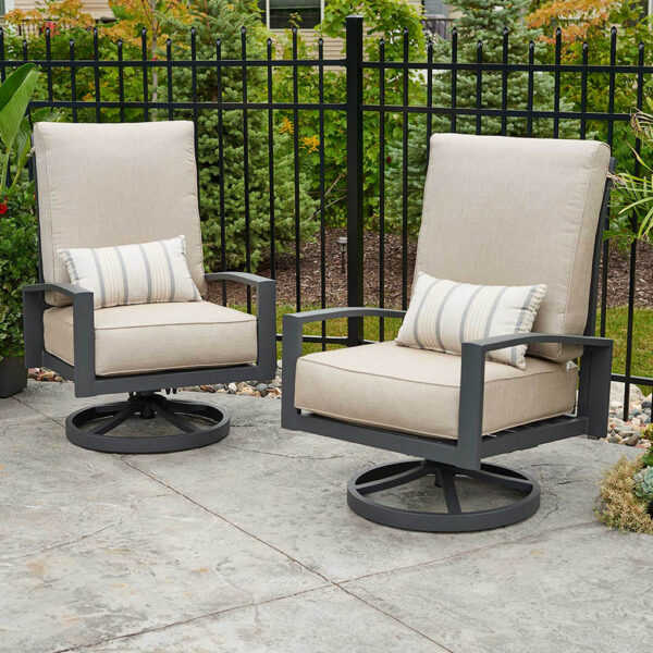 Enhance your outdoor living space by adding these chat rocking chairs to your backyard. Perfect for lounging on warm or cool nights alike, these are just what you need for a small one-on-one gathering.