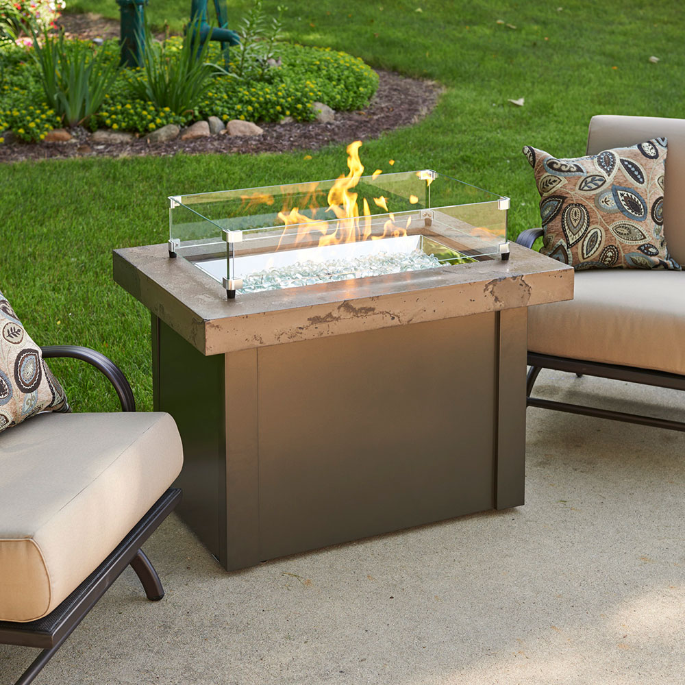 Gather around the fire this season with Outdoor Greatroom’s Providence fire table, which features a 12” x 24” stainless steel crystal burner for a compact design, making it perfect for smaller outdoor spaces. This simple and stylish fire pit table can take your backyard up a notch!