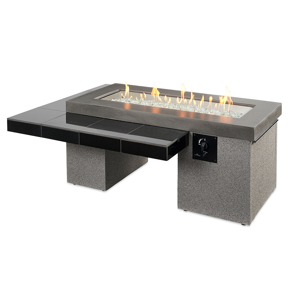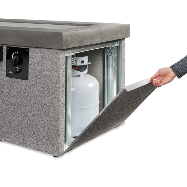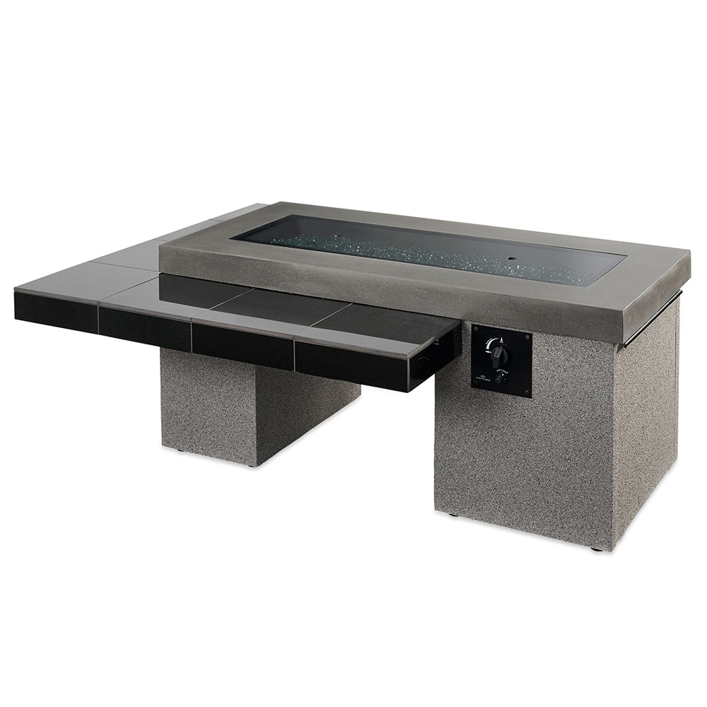 A modern look in granite and stucco, the Uptown Gas Fire Pit Table is designed with clean, simple lines, and engineered to showcase a 12×42″ Stainless Steel Crystal Fire Burner. This stunning glowing fire is sure to heat up your outdoor space. The 2-tiered table design is functional as well as beautiful and makes for a perfect area to entertain.