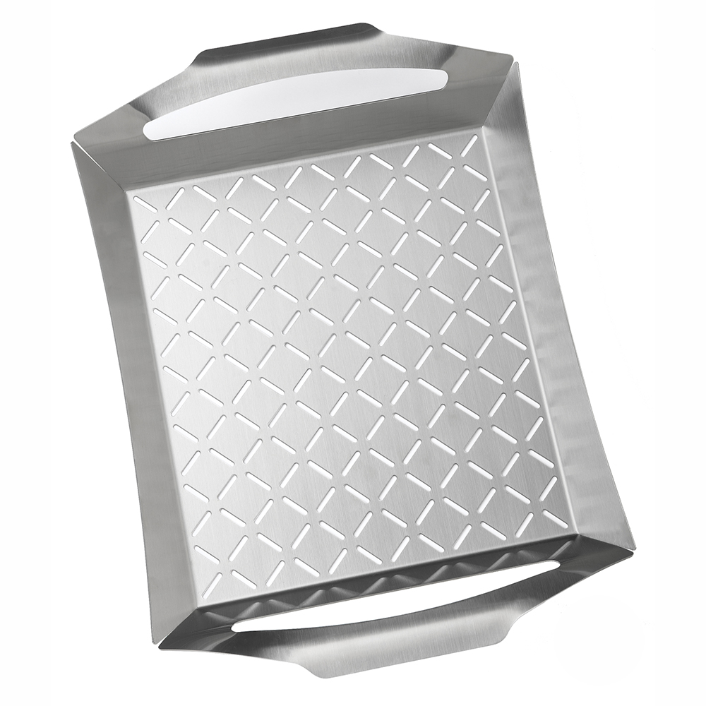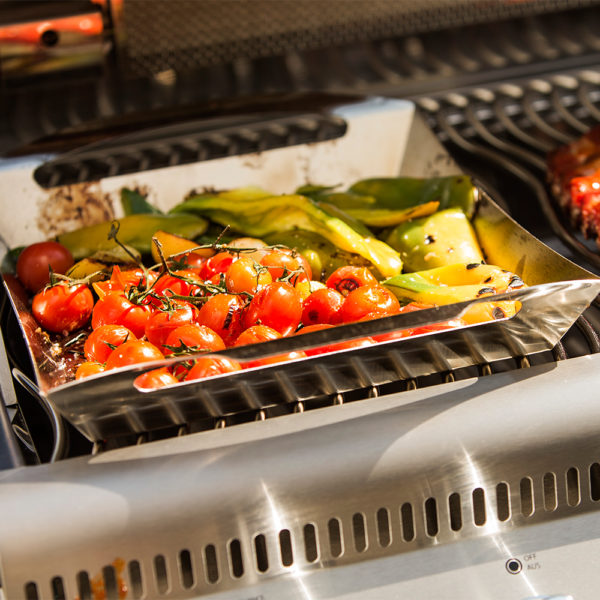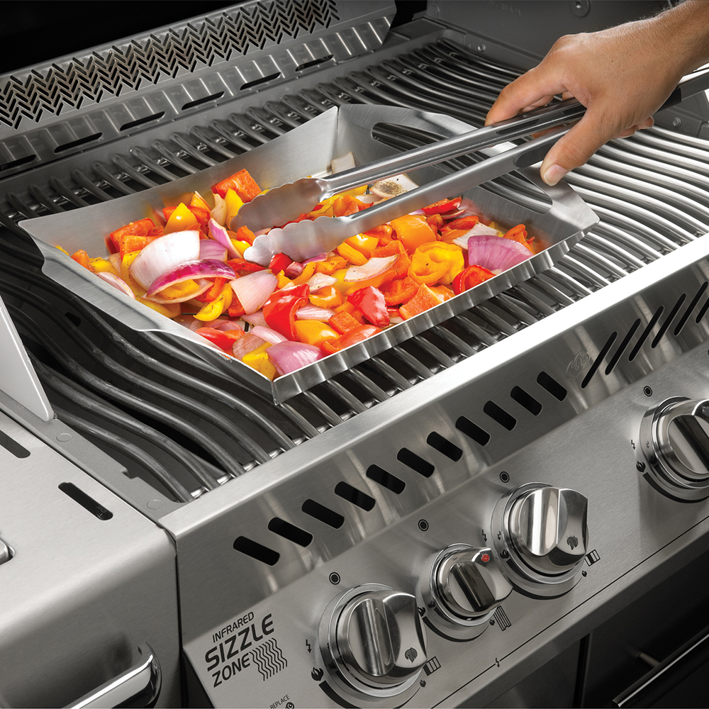 Napoleon’s Pro Series Stainless Steel Grill Topper is perfect for the neighborhood grill master. Designed for grilling small vegetables and other foods, it’s a versatile grill accessory that will make cooking all the more convenient. It features small holes to let the heat and and to allow juices to drain. It also includes high sides perfect to ensure that the food doesn’t slide over the edge, as well as convenient handles.