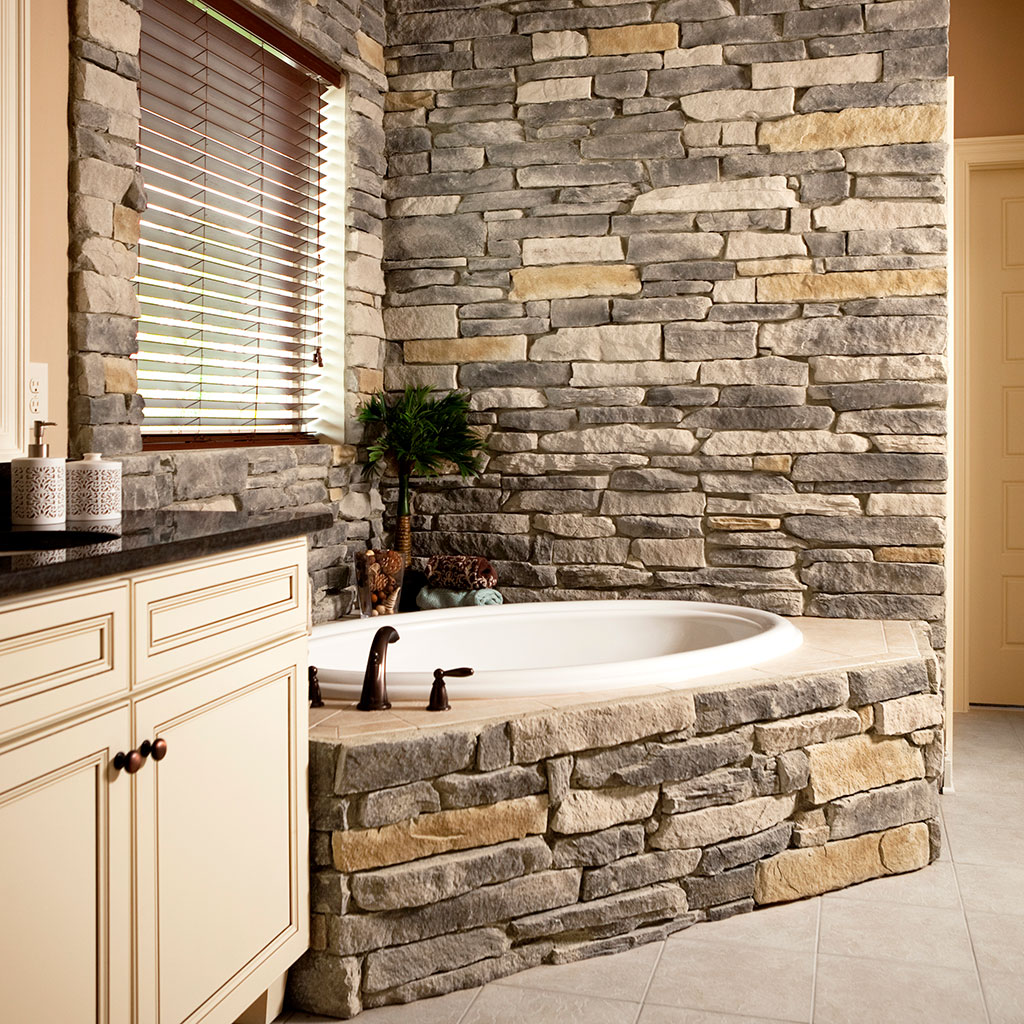 Our Provia Osage Ledgestone is a jagged, rough stone that is random in both size and shape. The imperfect surfaces and earthy brown and gray hues are so authentic looking, you’d swear they were natural. Dramatic shadows between the individual stones change with the sun’s position, giving it a fluid and striking curb appeal.