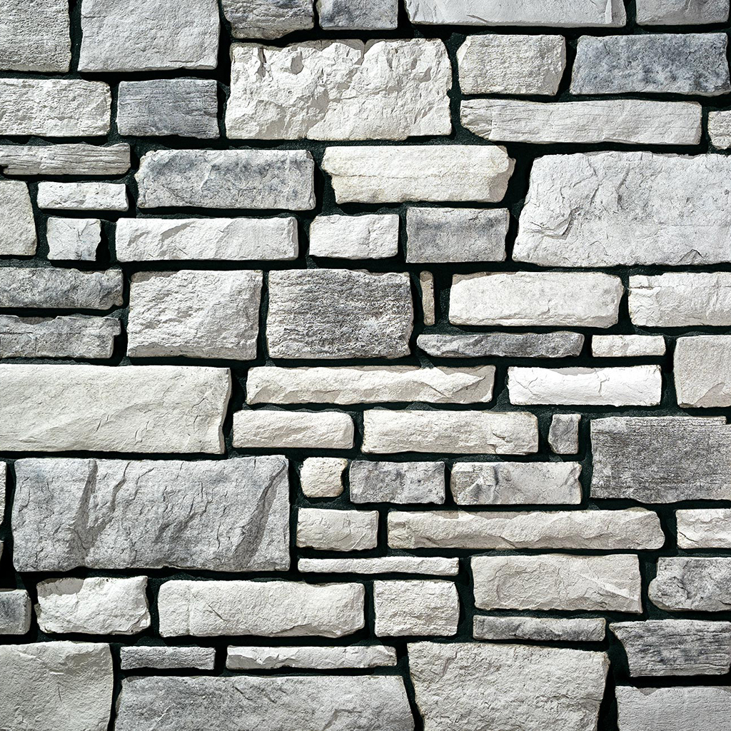 Our Terra Cut manufactured stone is one of our newer Provia stone profiles, which embodies the key characteristics of coarse-grained, glacier-worn stones. Large and small slabs intermingle for a cobbled look and the multi-textured, rugged surface creates striking shadow lines.
