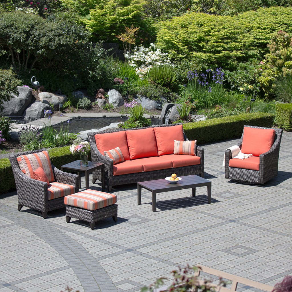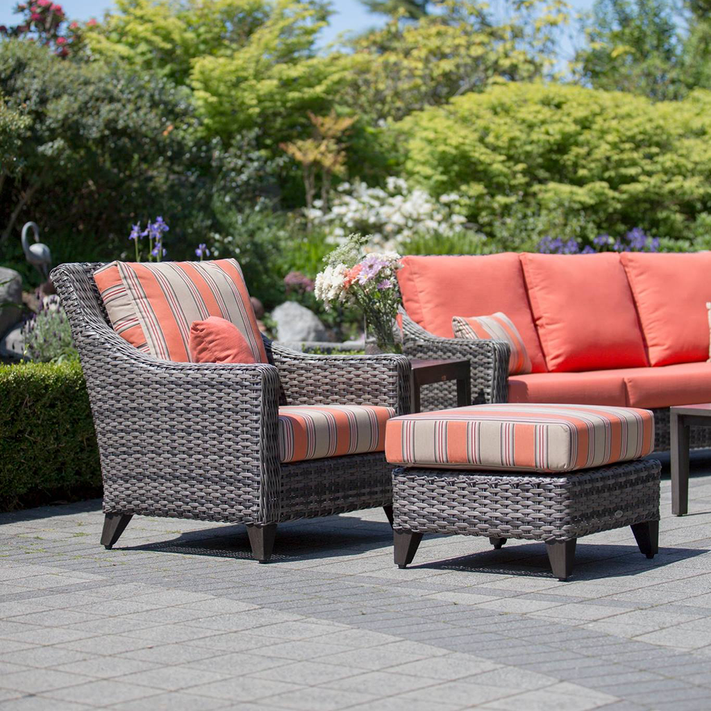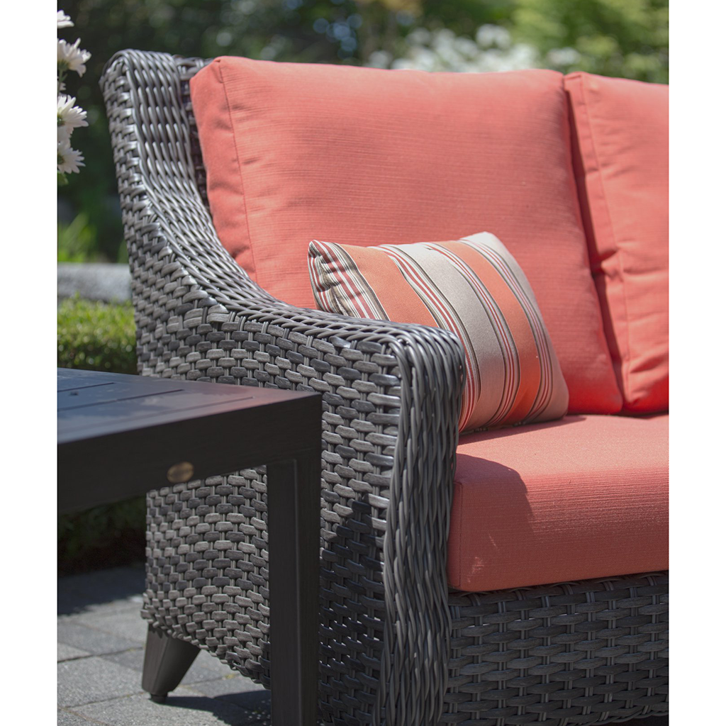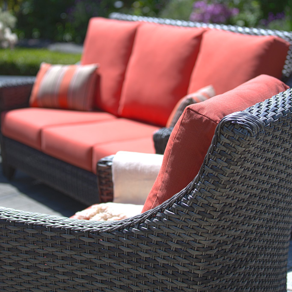 Our Ratana Boston patio set features a transitional design that combines comfort with a stylish aesthetic. Meticulously hand-woven with thick, braided resin and wrapped tightly over a powder coated aluminum frame, this patio furniture is durable enough to resist harsh weather elements.
