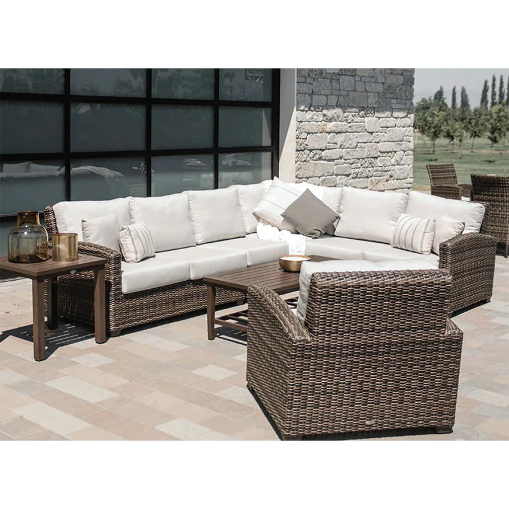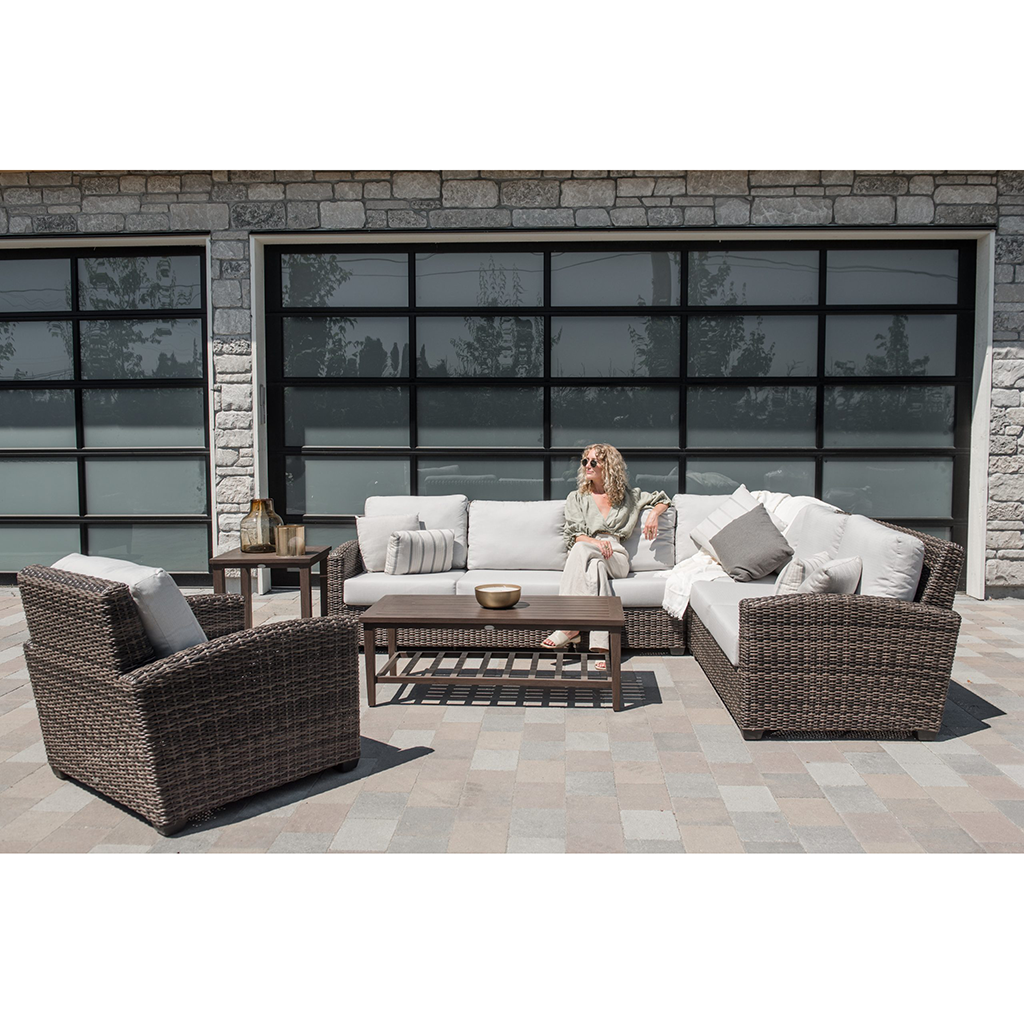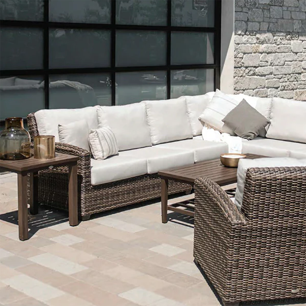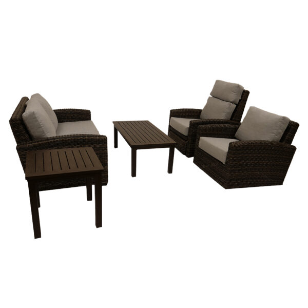 Our Ratana Coral Gables patio set was inspired with the city in mind, yet still blends in seamlessly in the Midwest. An aluminum frame covered in a double wall weave makes it durable in the outdoor elements. This cozy set will make you never want to head back indoors.